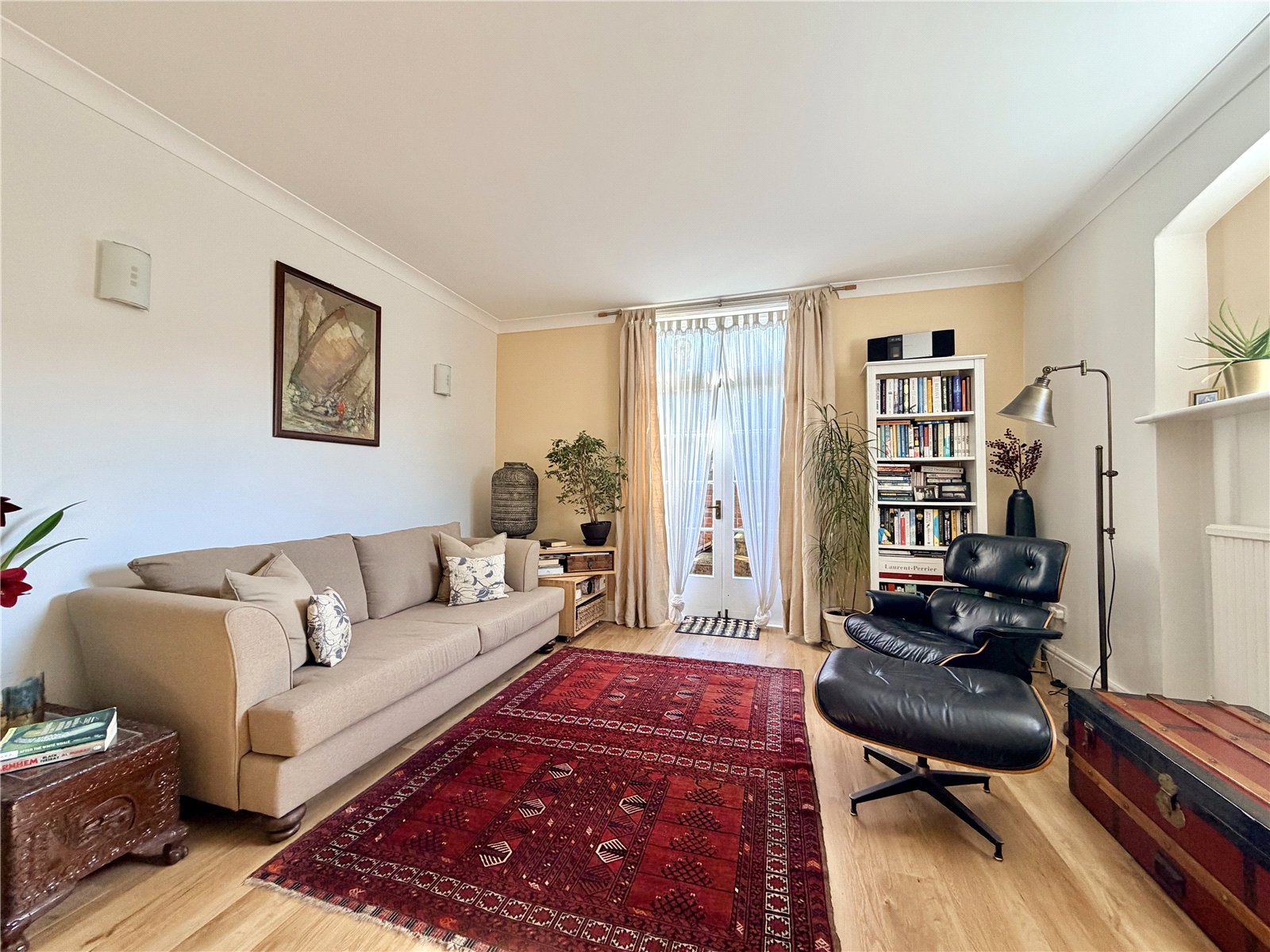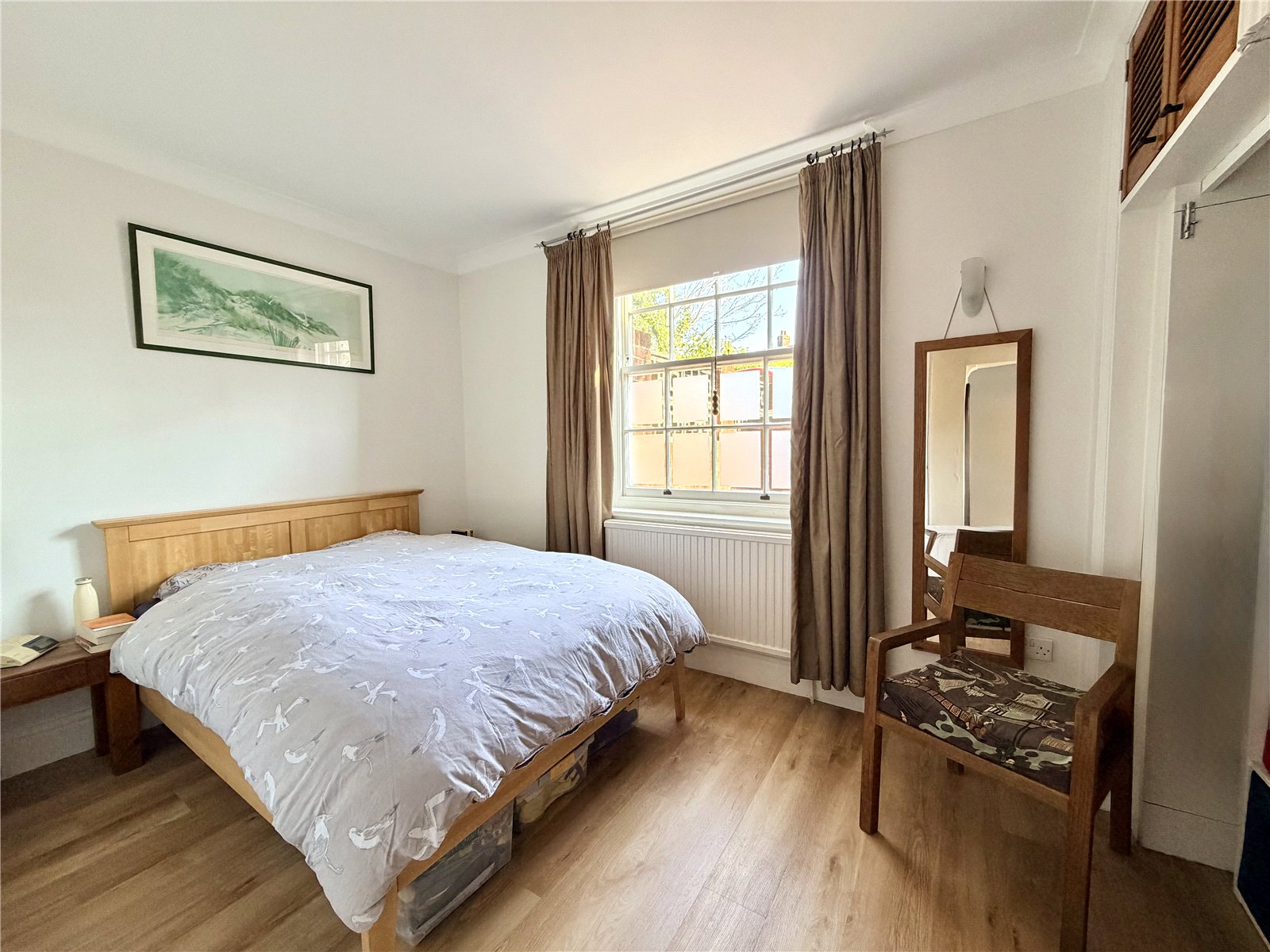 Flat One is accessed via the main communal entrance hall, passing an elegant sweeping staircase to the apartment’s front door. The entrance hall provides access to one of the courtyard gardens, with steps leading down to an inner hallway. Here, there is a useful utility cupboard and a door opening into the sitting room, a comfortable and inviting space featuring attractive flooring and glazed double doors leading to the second courtyard garden, which in turn provides access to the parking area.