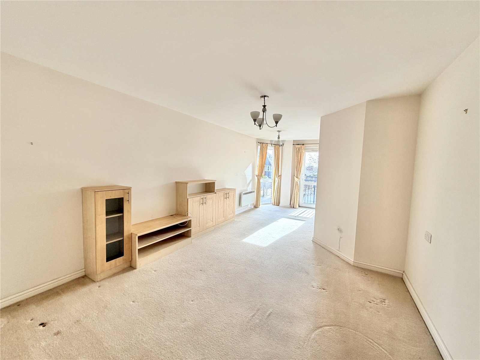 A range of display units, electric heater, Juliet balcony and door to
