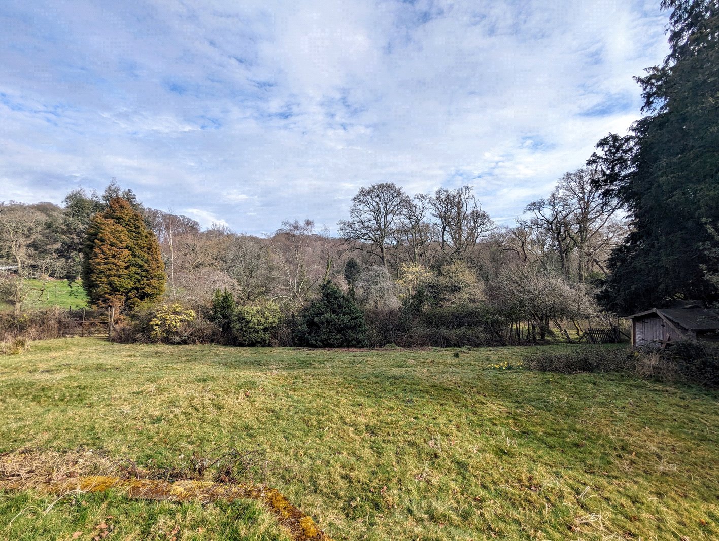At the far end there is potential to create a pedestrian access point directly into the forest and at the bottom of the orchard to re-install a full-width gate onto a very minor road, which would give practical independent access to the fields.