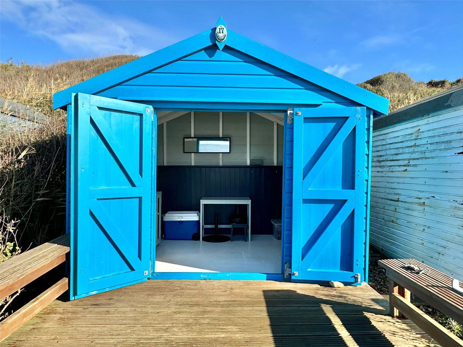 AN ELEVATED BEACH HUT WITH STUNNING VIEWS OF THE COASTLINE AND ISLE OF WIGHT