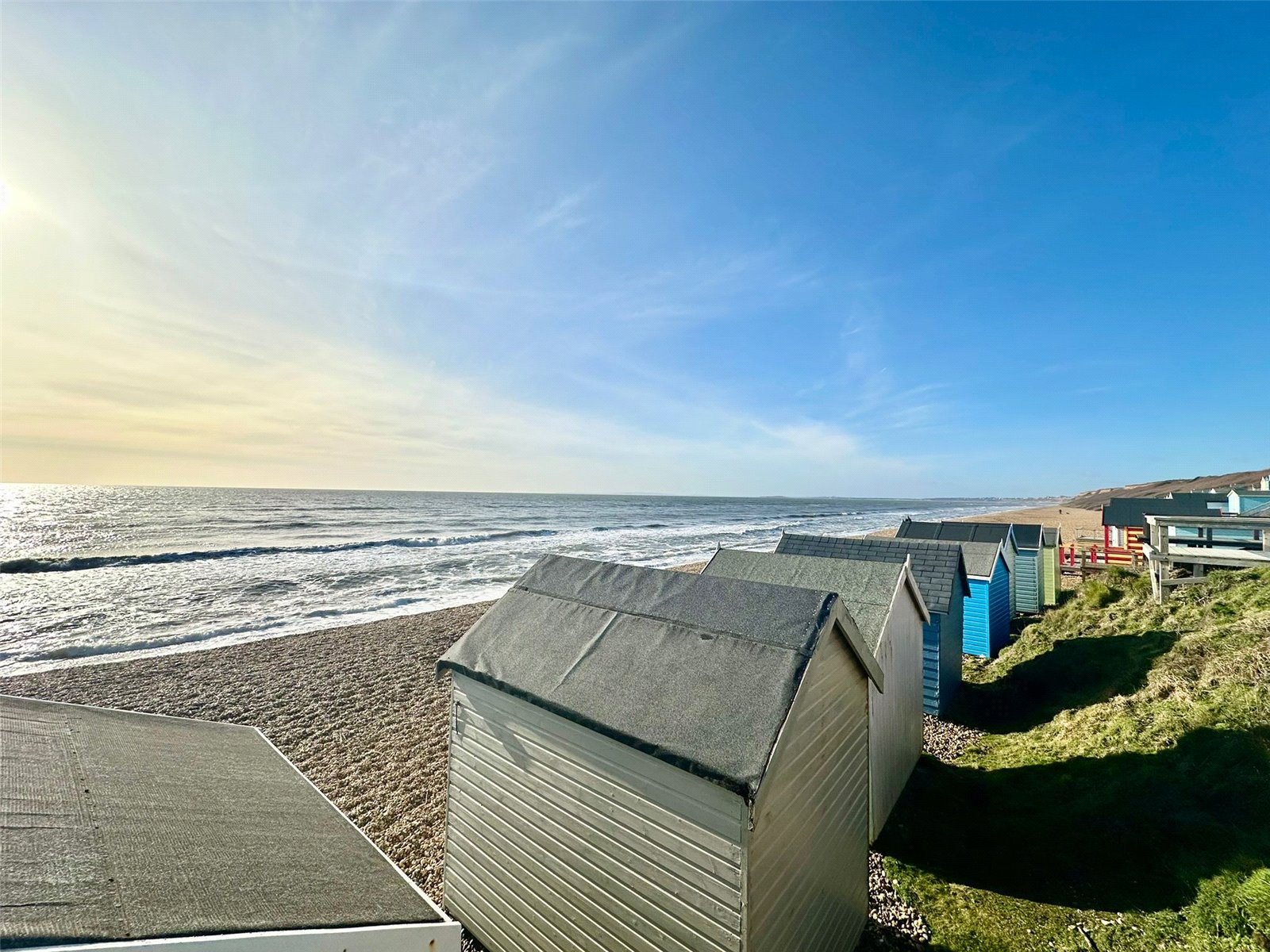 Directions: From Milford-on-Sea village centre, proceed out of the village in a westerly direction along the High Street, joining Park Lane (B3058), which on reaching the clifftop, becomes Cliff Road. Take the second left into the car park (with the kiosk) then take the second set of steps to the west of the kiosk to the beach level, turn right and No 357 will be seen after a short distance with an elevated balcony