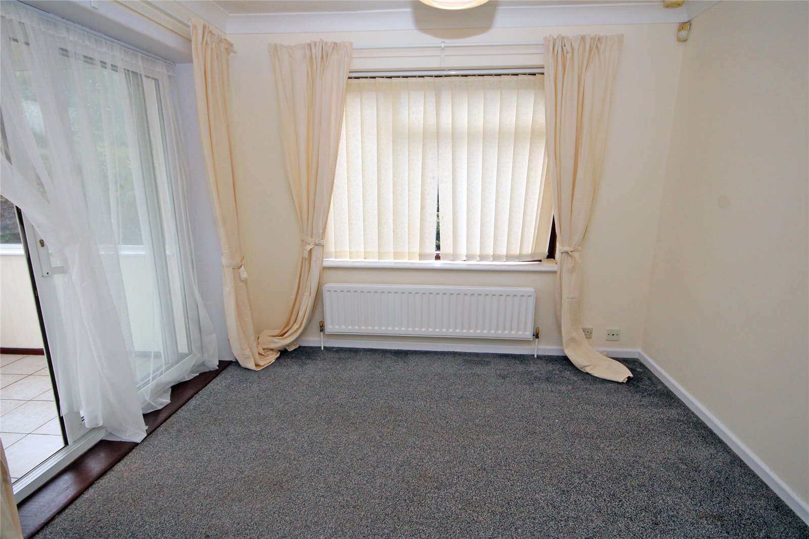 Double glazed window to side aspect, further double glazed sliding patio doors to: