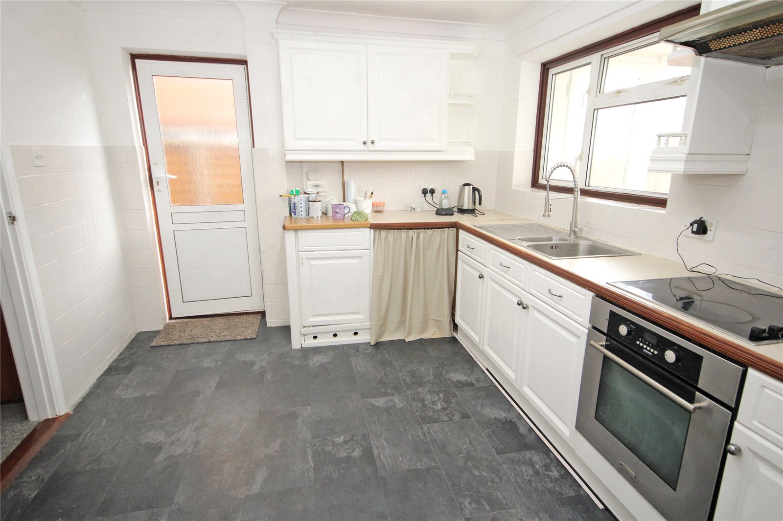 Tiled flooring, double glazed windows and double opening casement doors overlooking rear garden.