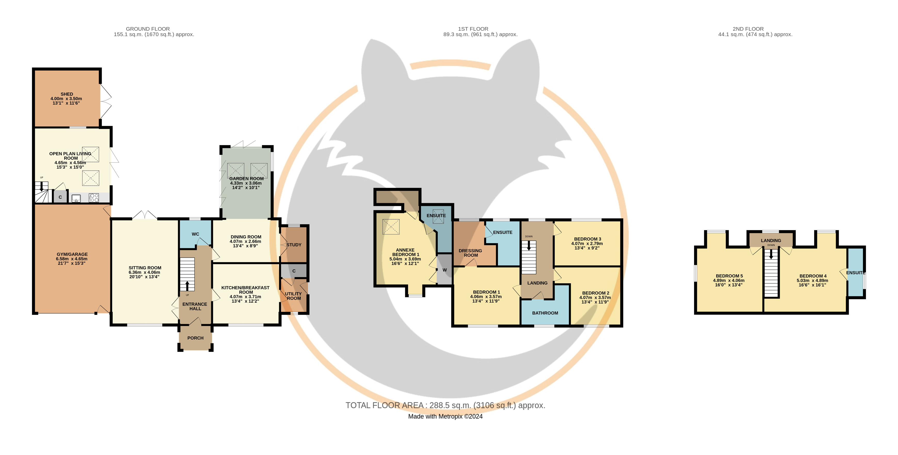 Second floor landing providing access to two further king bedrooms, one having an excellent range of built in bedroom furniture and a fully tiled en-suite shower room fitted with a white suite.
