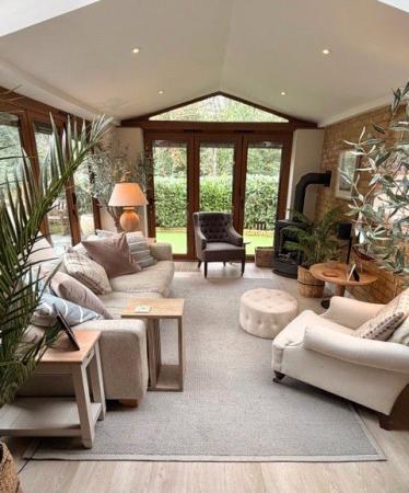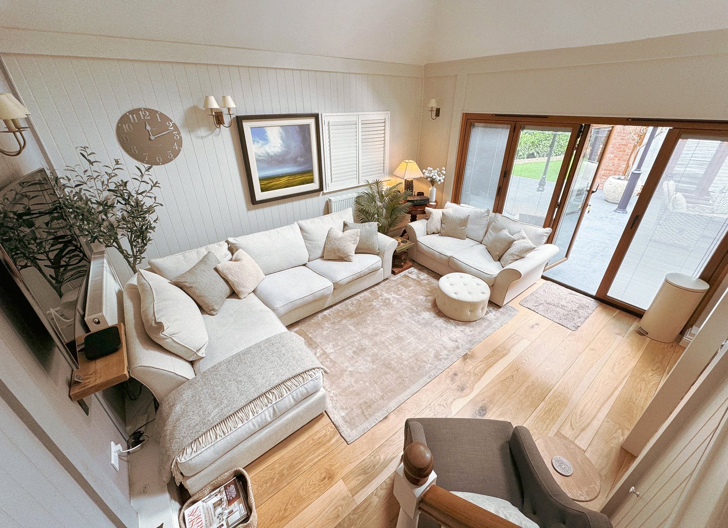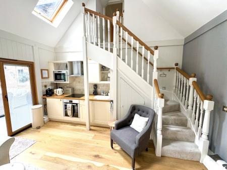 Annexe: UPVC bi-fold doors give access to a fantastic open planned living area with engineered solid wood flooring, vaulted ceiling with two Velux windows, two large double radiators connected to the main central heating system of the house controlled by a Nest zonal system.