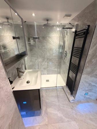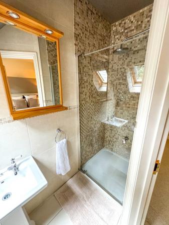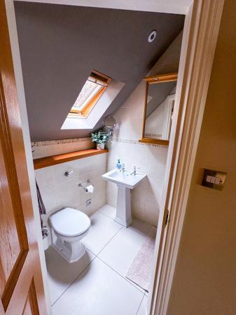 The en-suite comprises of tiled flooring, fully tiled walls and a modern suite comprising a WC with hidden cistern, pedestal wash hand basin, walk in shower with thermostatic shower attachments, glass shower screen, recess ceiling spotlights and Velux window with built in blind.