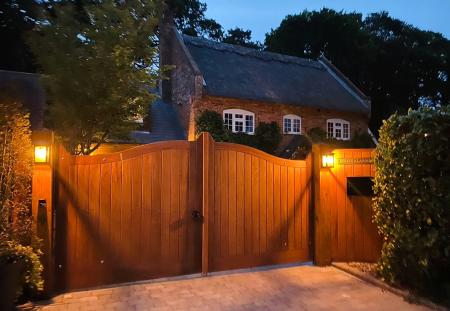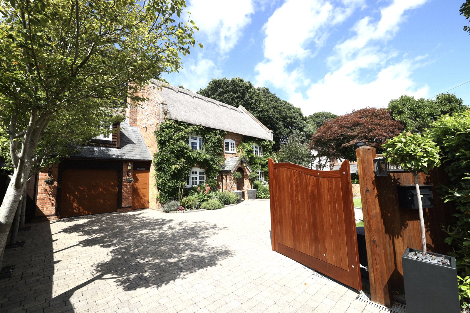 The property sits on an extensively landscaped plot with no expense spared and is accessed via twin Iroko hard wood timber gates to a private front garden which is well screened from the road by mature hedging. A large block paviour driveway provides excellent off road parking and the remainder is laid mainly to high quality artificial lawn with a private patio area and an attractive brick well with a pitched slate roof.
