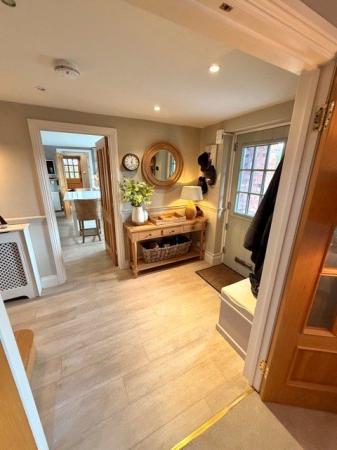 Entrance hall with high quality oak staircase to the first floor, low level lighting, recently fitted double glazed stable door and understairs storage cupboard.