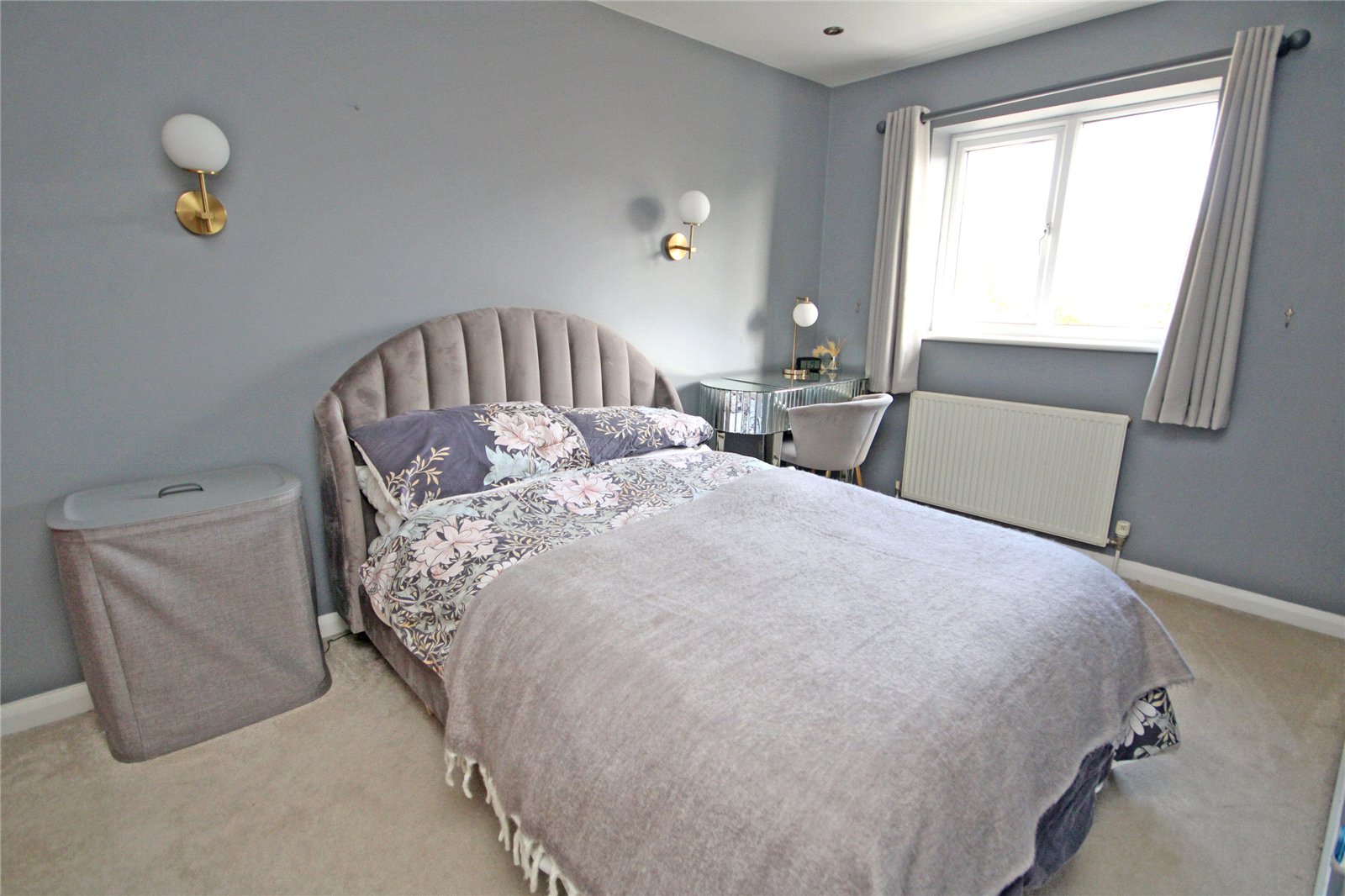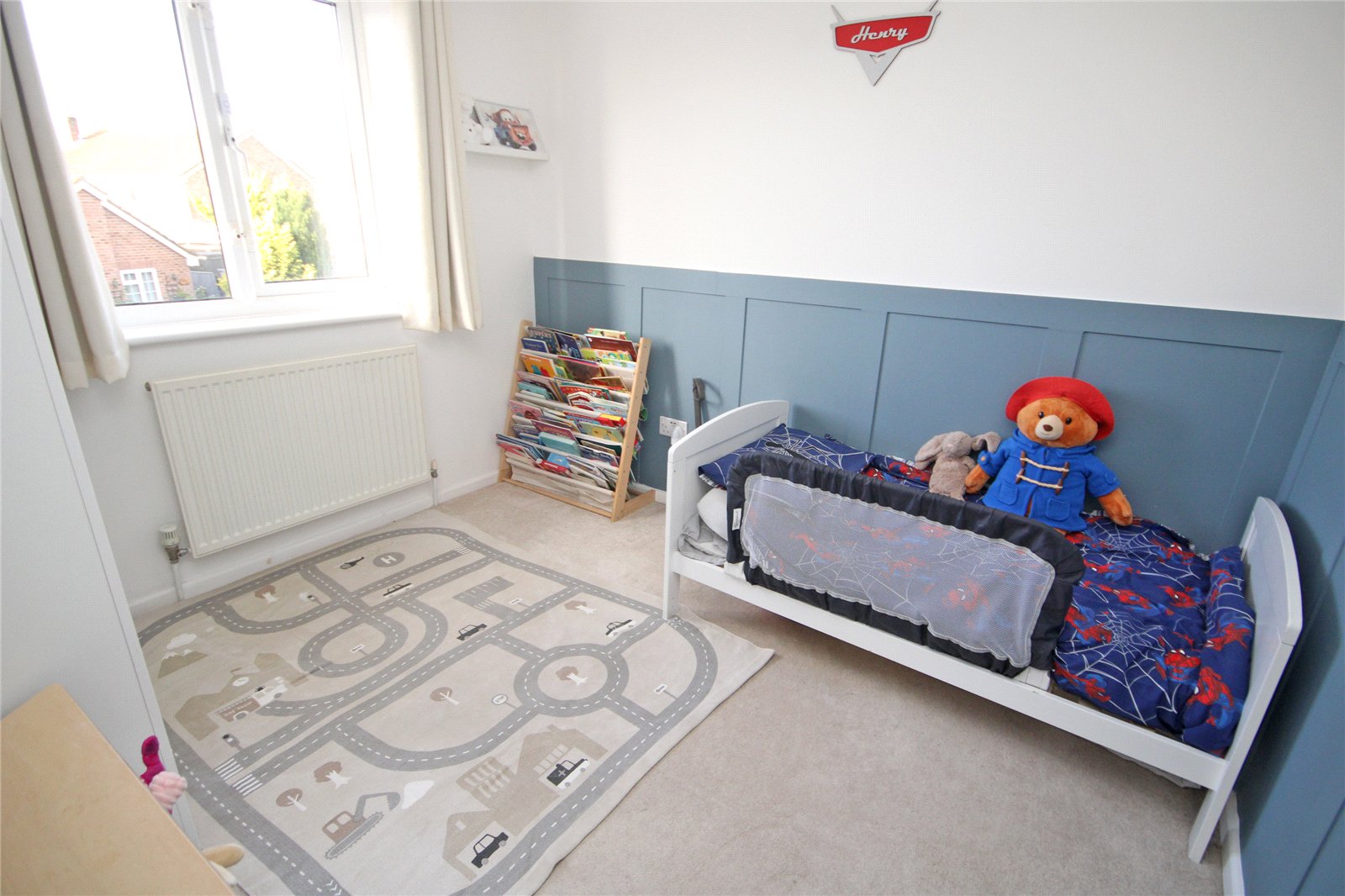 The front garden is stoned for ease of maintenance, providing off road parking for two cars with electric charging point, attached storage/refuse cupboard.