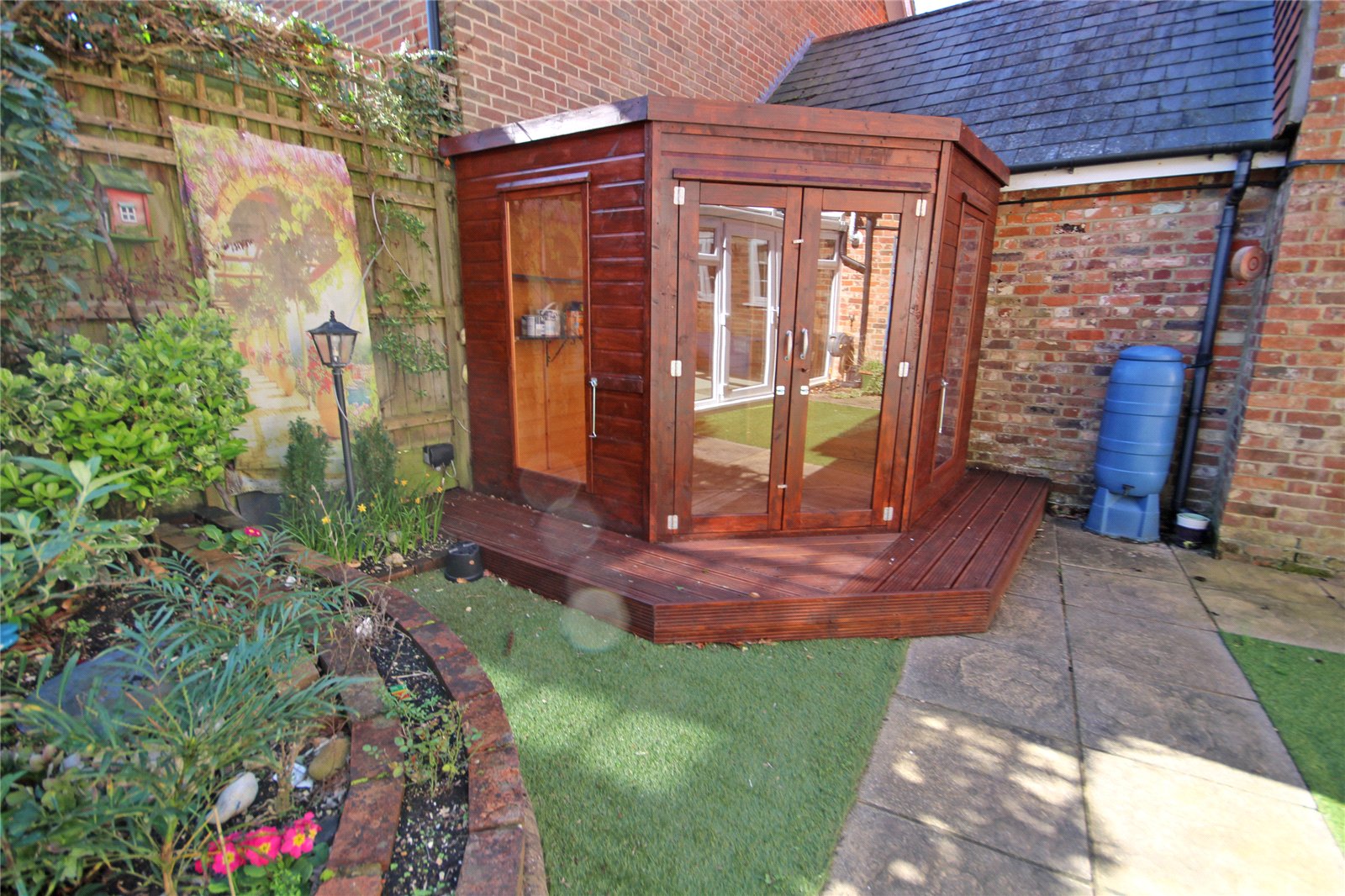 There is a courtyard style garden with timber summerhouse. The gardens are predominately paved for ease of maintenance and make a lovely sitting out area, well enclosed by fencing with raised flower bed. External power point and lighting.