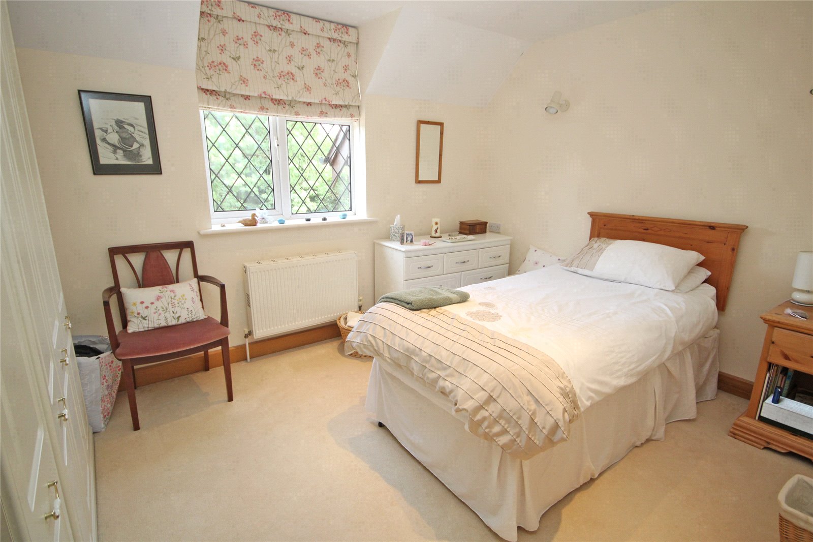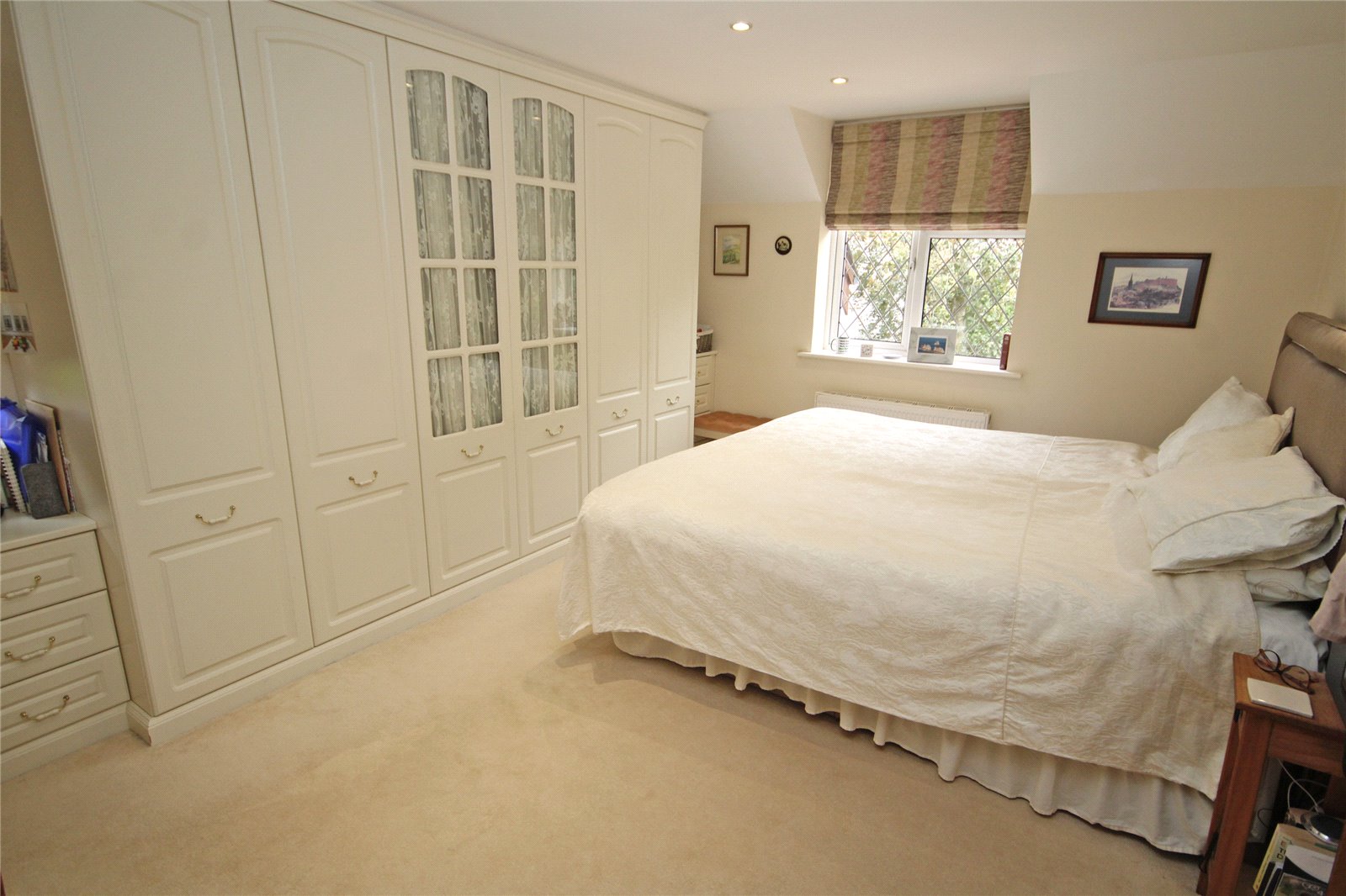 Excellent range of built in wardrobes and chest of drawers, double glazed window to front aspect, further double glazed window to side, door to: