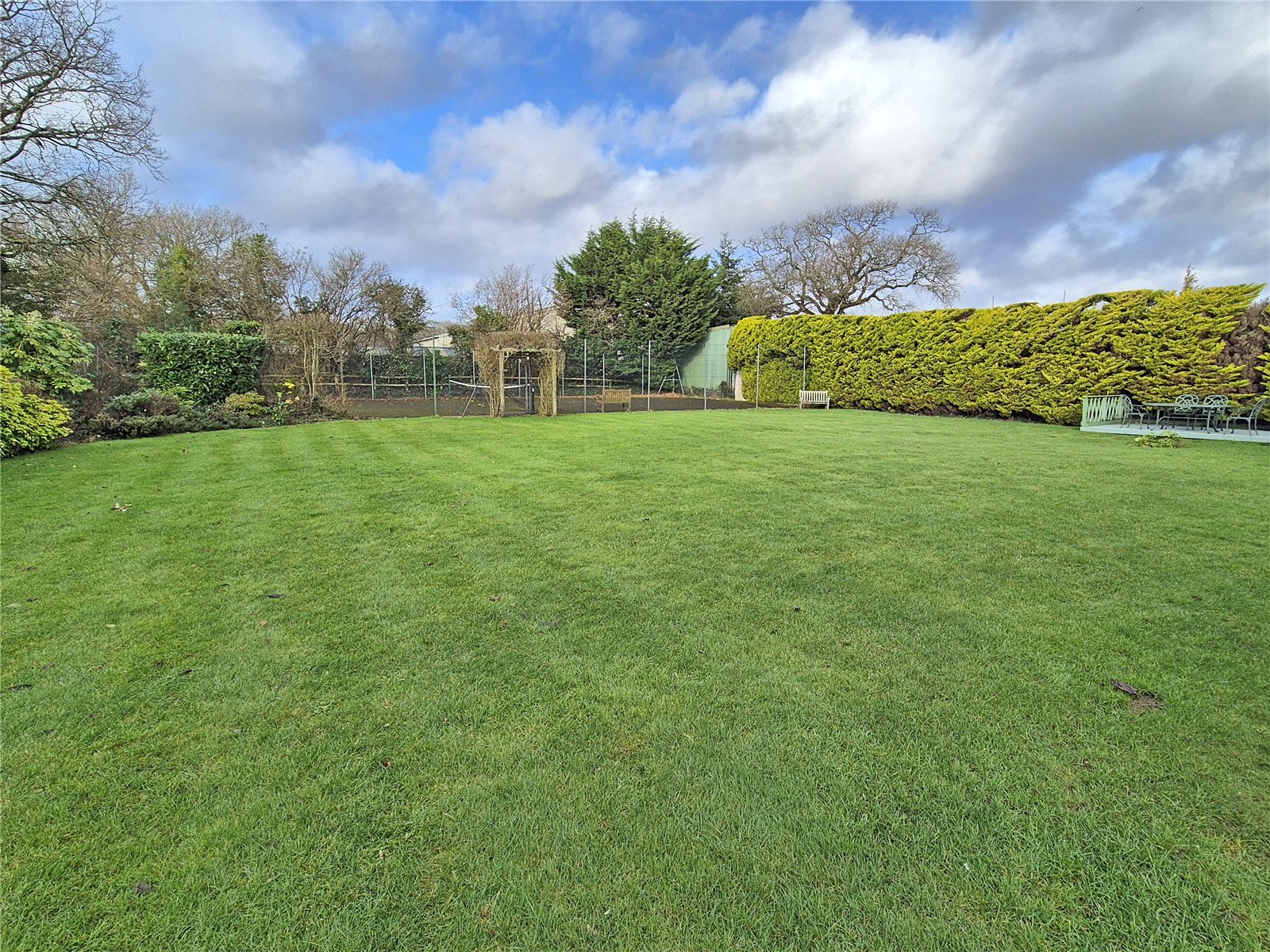 To the rear of the garden is a FULLY ENCLOSED FULL SIZE TENNIS COURT for any budding Wimbledon enthusiast.