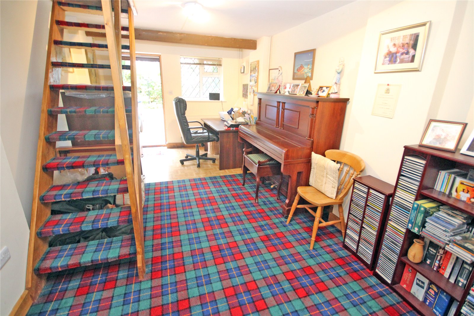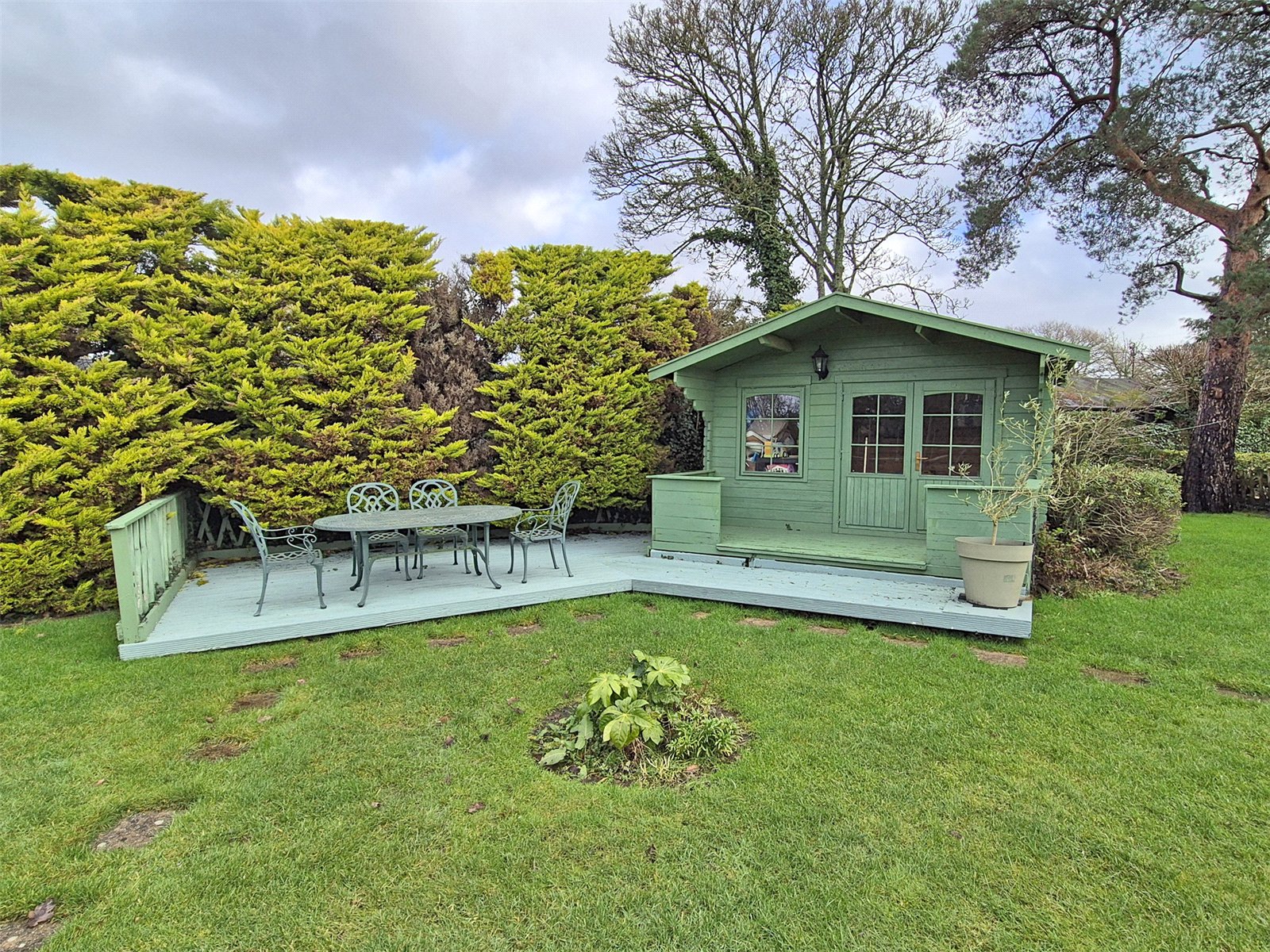 Double opening doors and windows overlooking the garden. Good sized sitting out decked area and further steps down to further decking, perfect for al fresco dining.