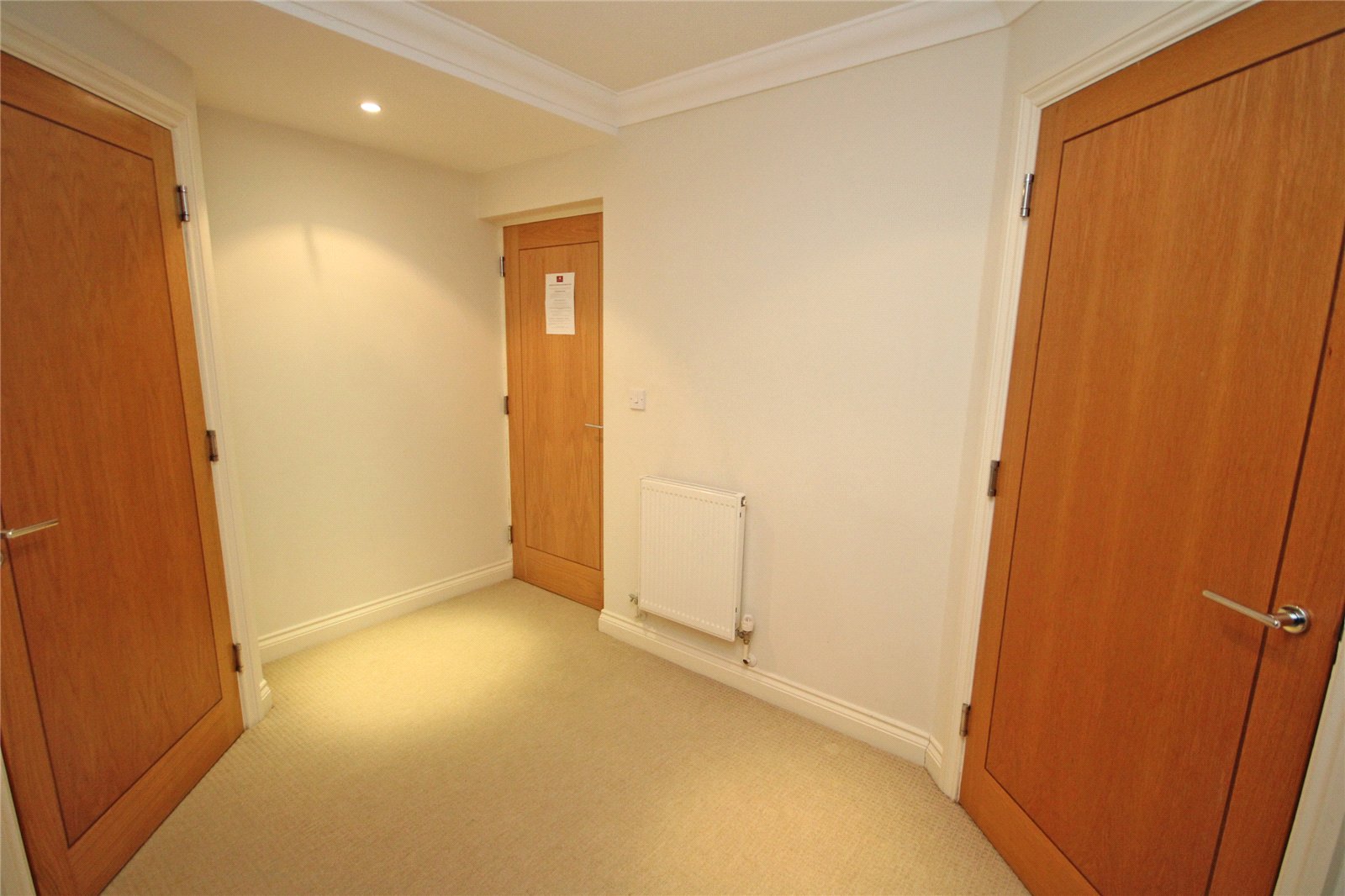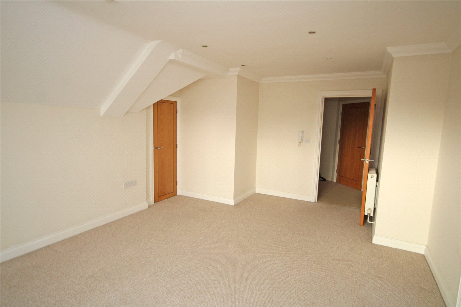 Useful built in storage cupboard, full length doors with Juliet balcony and views to front aspect, wall mounted security entry phone. Door to: