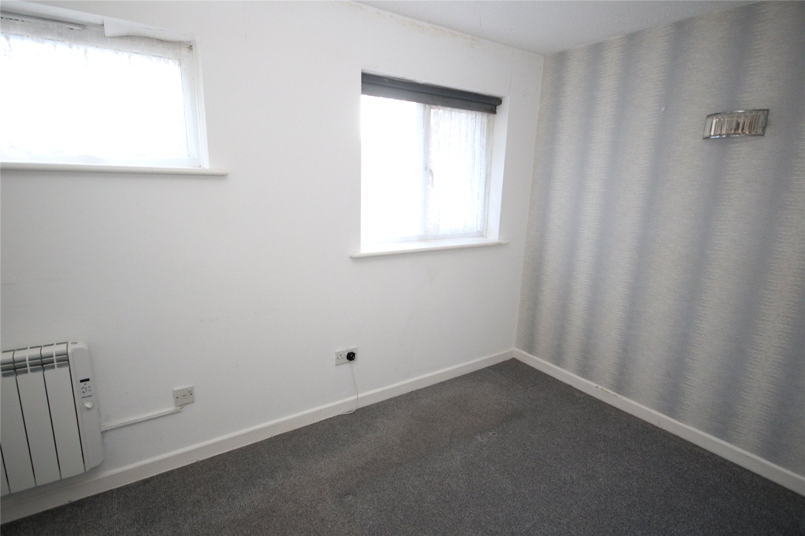 Built in wardrobe cupboard, electric heater, two windows to front.