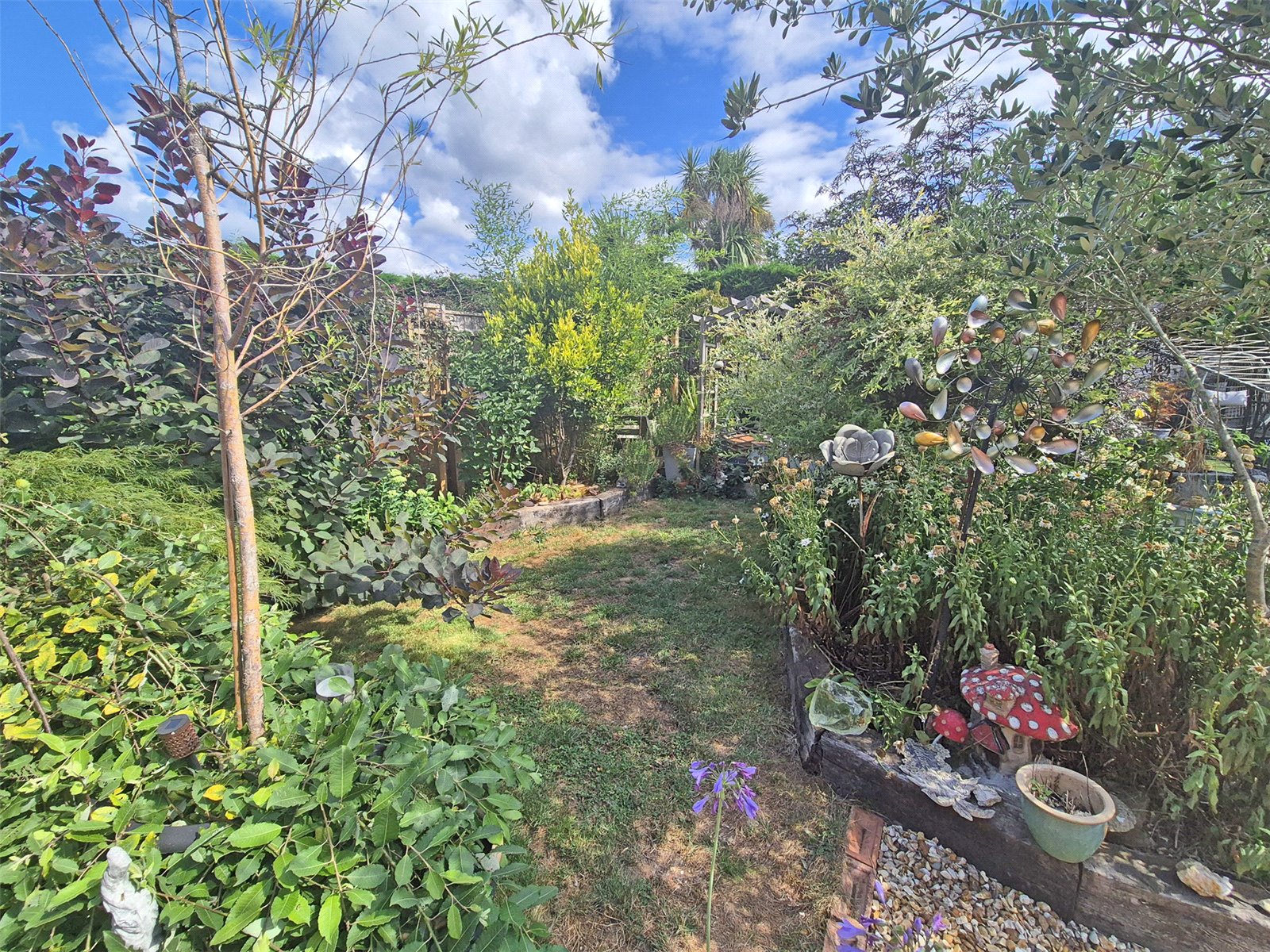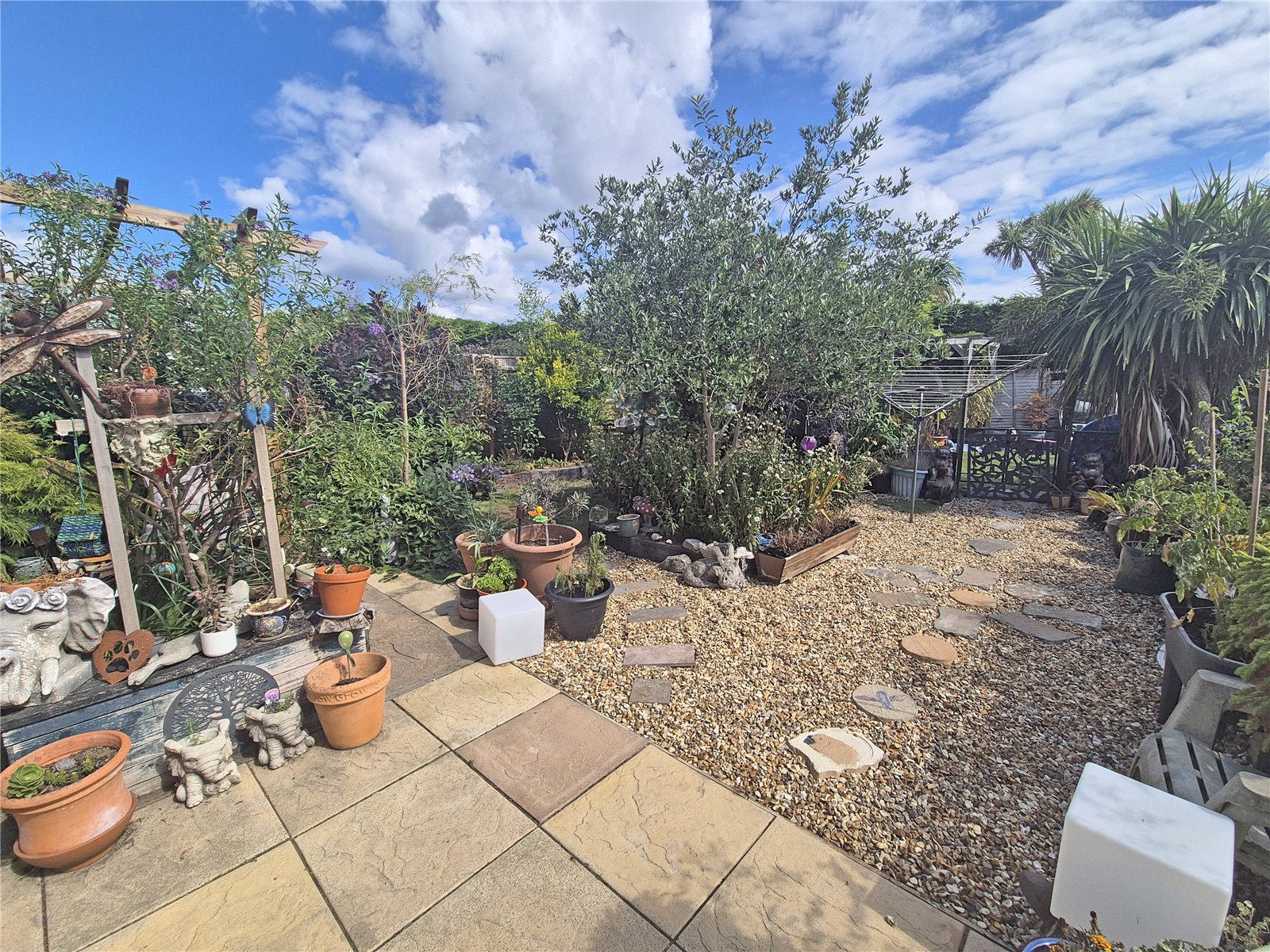 With area of paved patio immediately abutting the rear, covered pergola, shingle with inset pavior path leading down to area of lawn with an array of shrubs and plants. There is a further area of astroturf, covered pergola, providing a lovely sitting out area, all being enclosed by fencing.