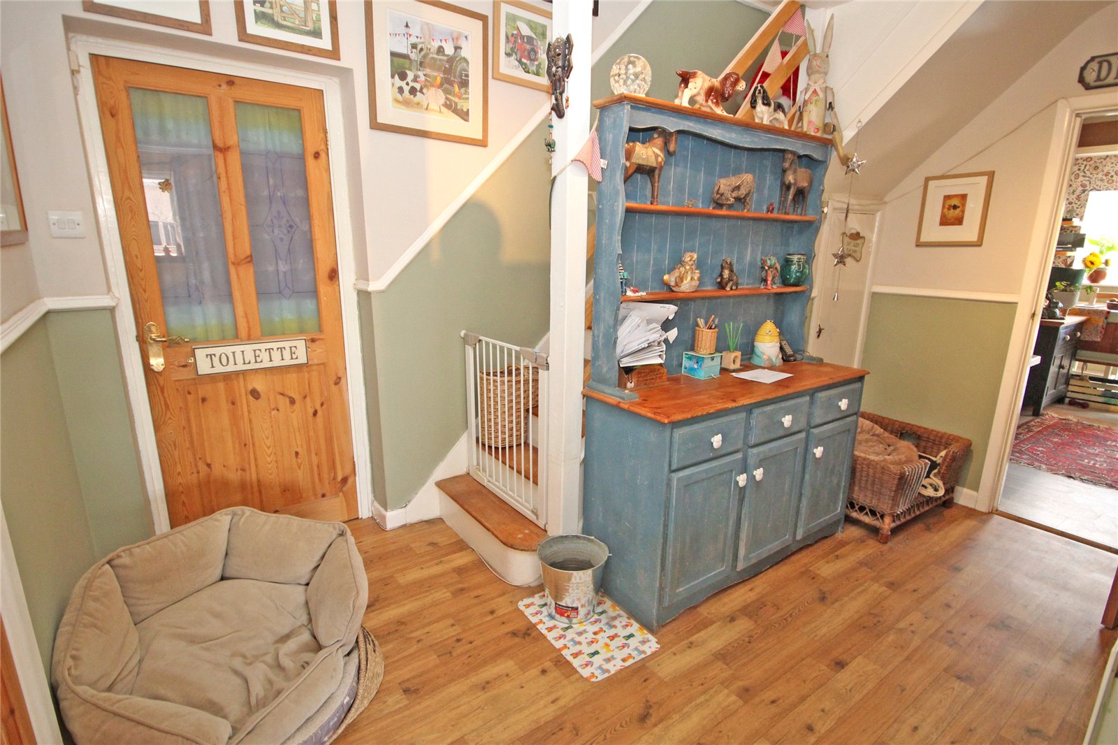 Part glazed front entrance door leading to entrance porch, further glazed door to:
