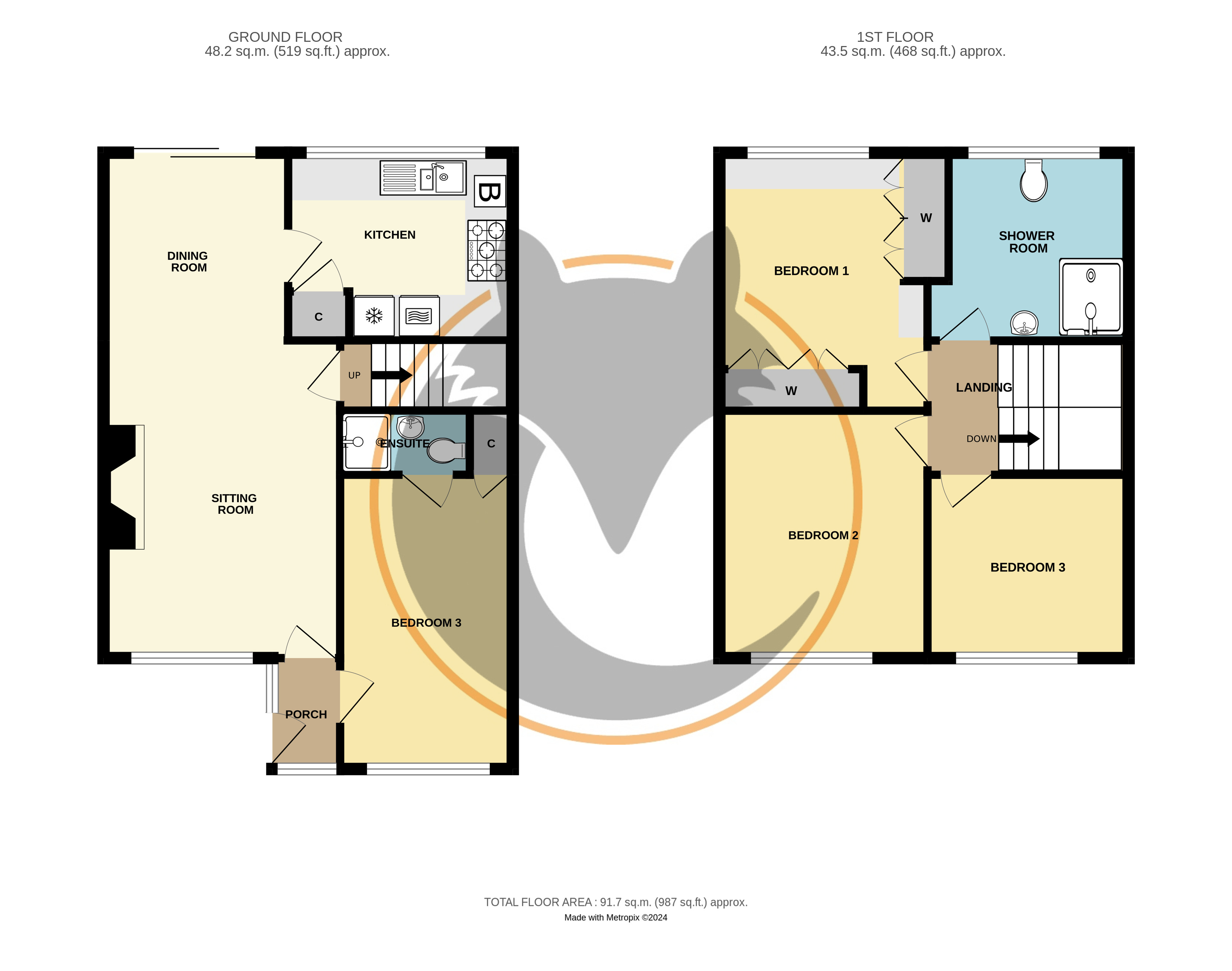 Comprising low level dual flush w.c., wash hand basin, fully tiled shower cubicle, inset ceiling downlighters, extractor fan, tiled flooring and tiled walls.