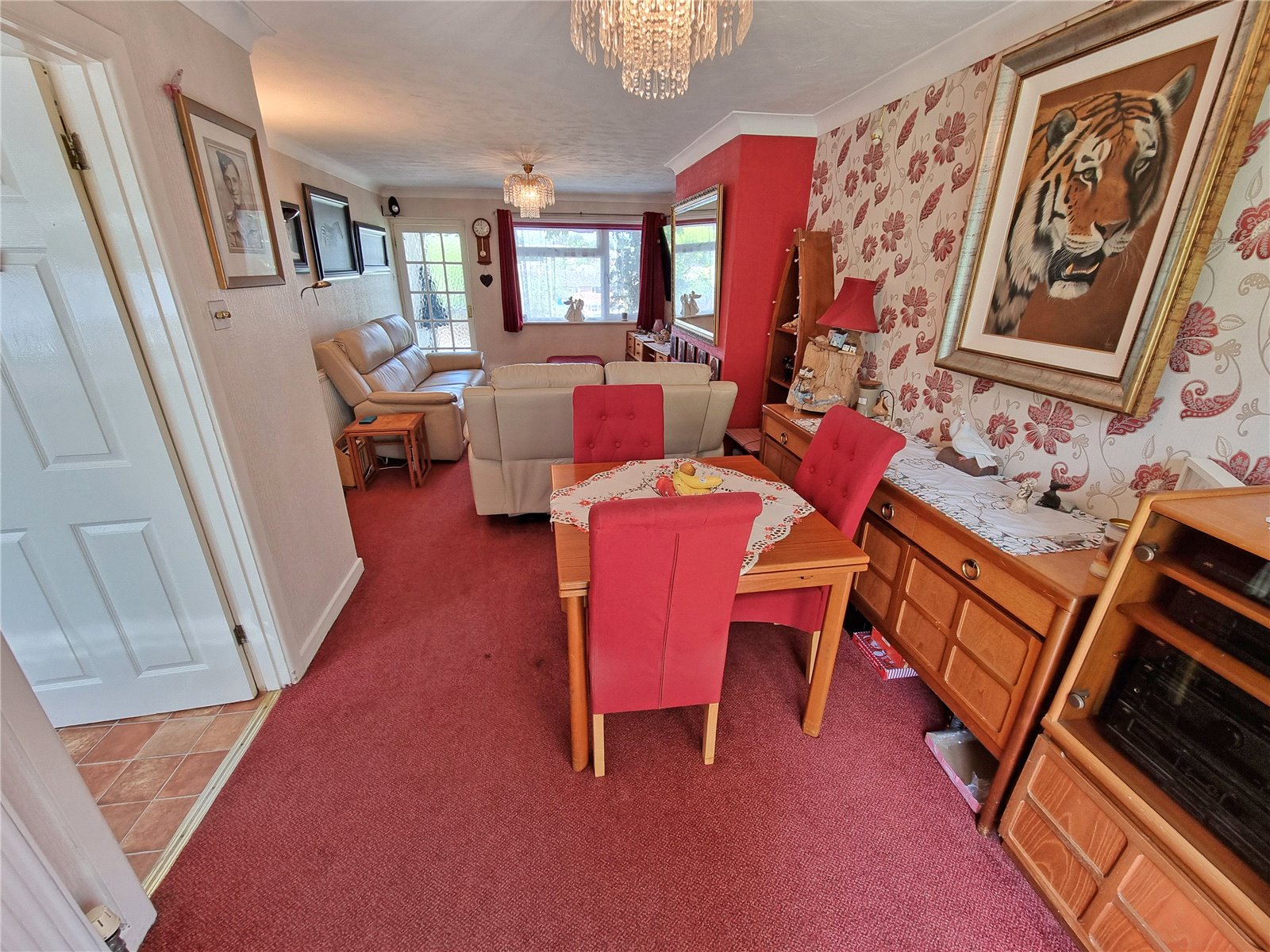 Sitting/Dining Room 24' (7.32) x 11'4" (3.45) narrowing to 8'9" (2.67) at dining end.