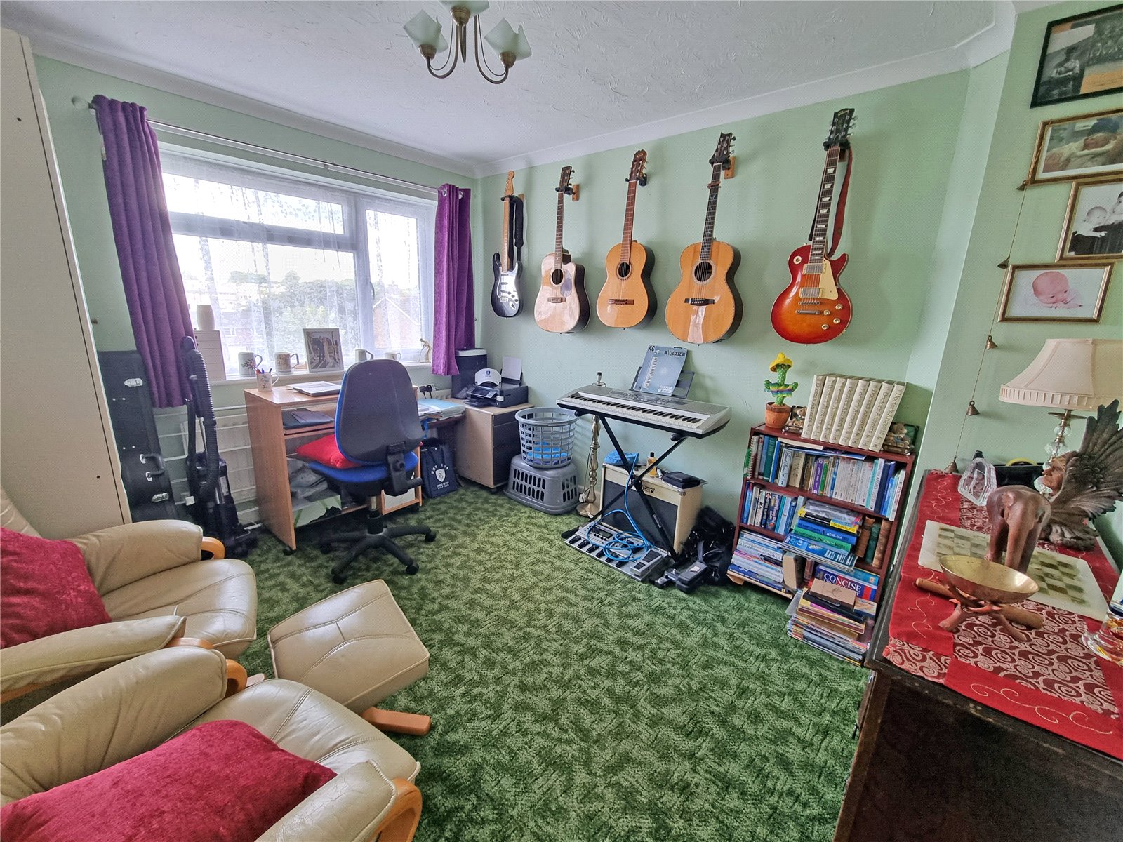 Ceiling light point, double glazed window overlooking front aspect with views across to New Milton water tower.