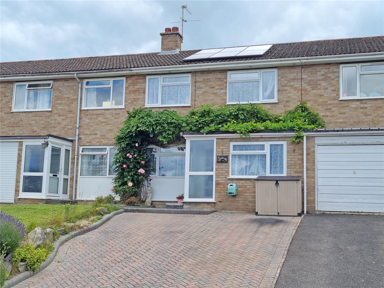 The property is approached via a block pavior driveway, providing off road parking, Outside tap. Area of astro-turf and flower borders.