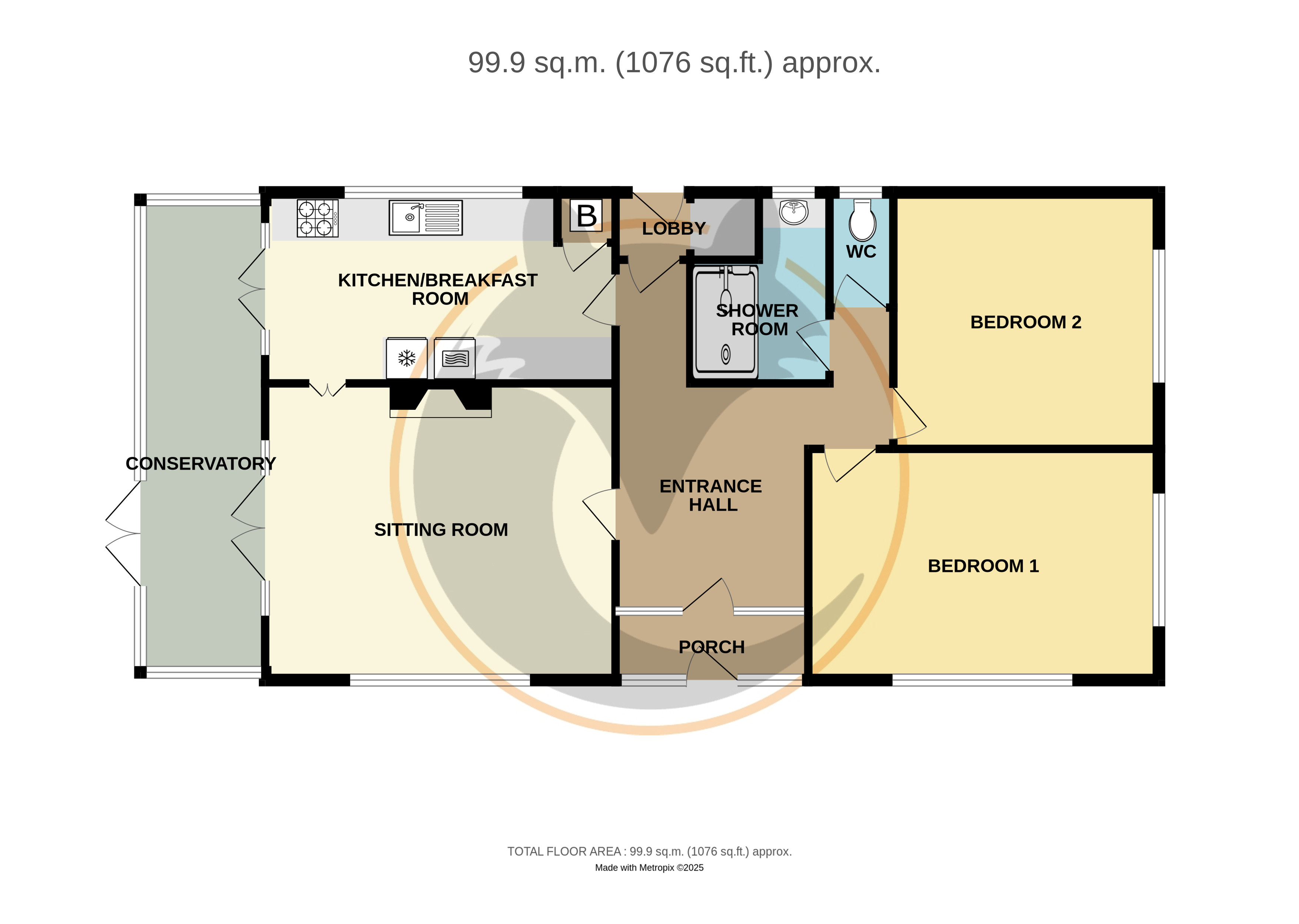 Brick base with pitched polycarbonate roof, UPVC double glazed windows and double opening doors overlooking rear garden.