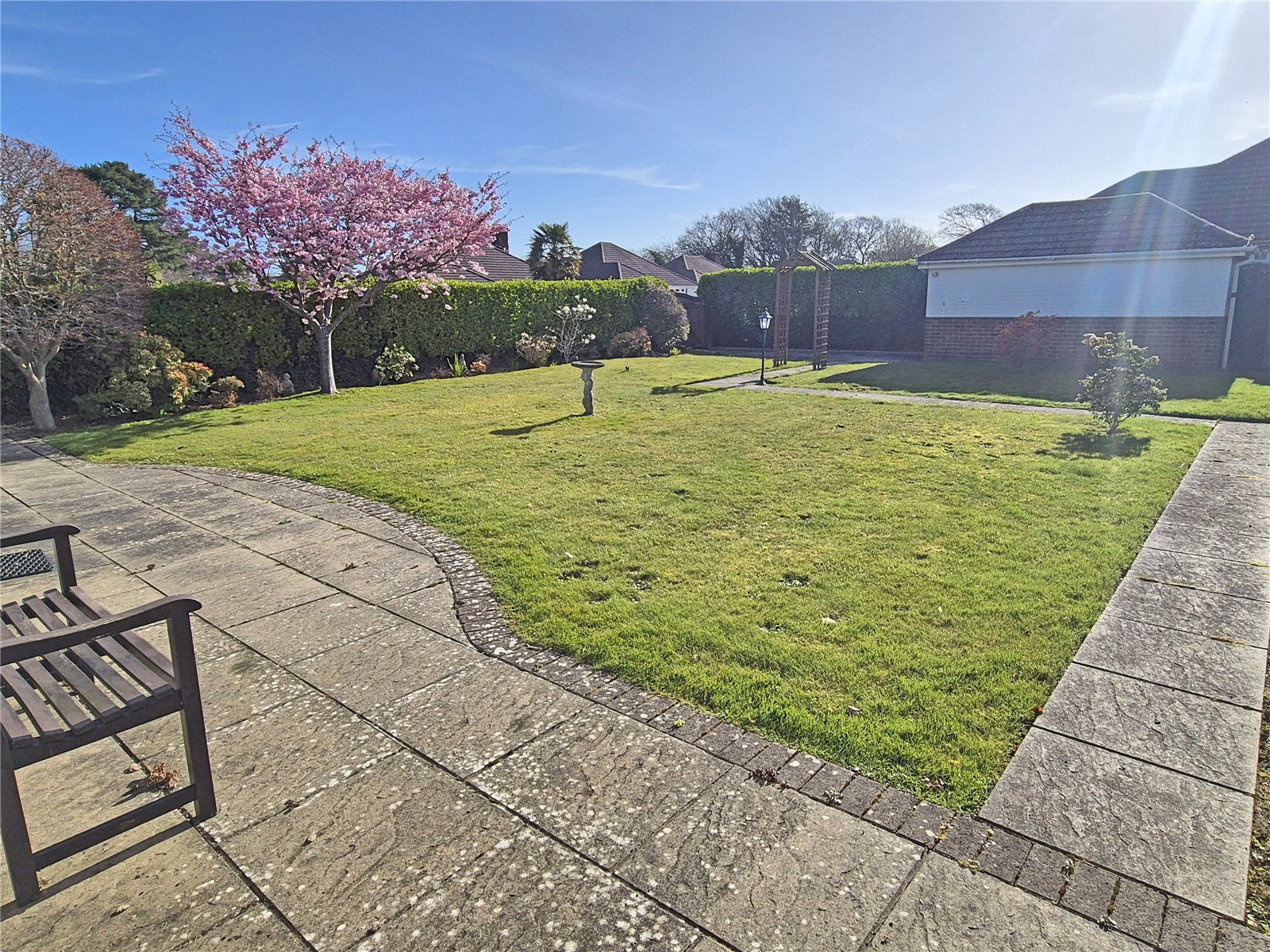 is a particular feature of the property, facing in a southerly direction with good sized area of patio immediately abutting the rear, leading onto two areas of shaped level lawn, all being enclosed by mature hedging and fencing and benefiting from an excellent degree of privacy.