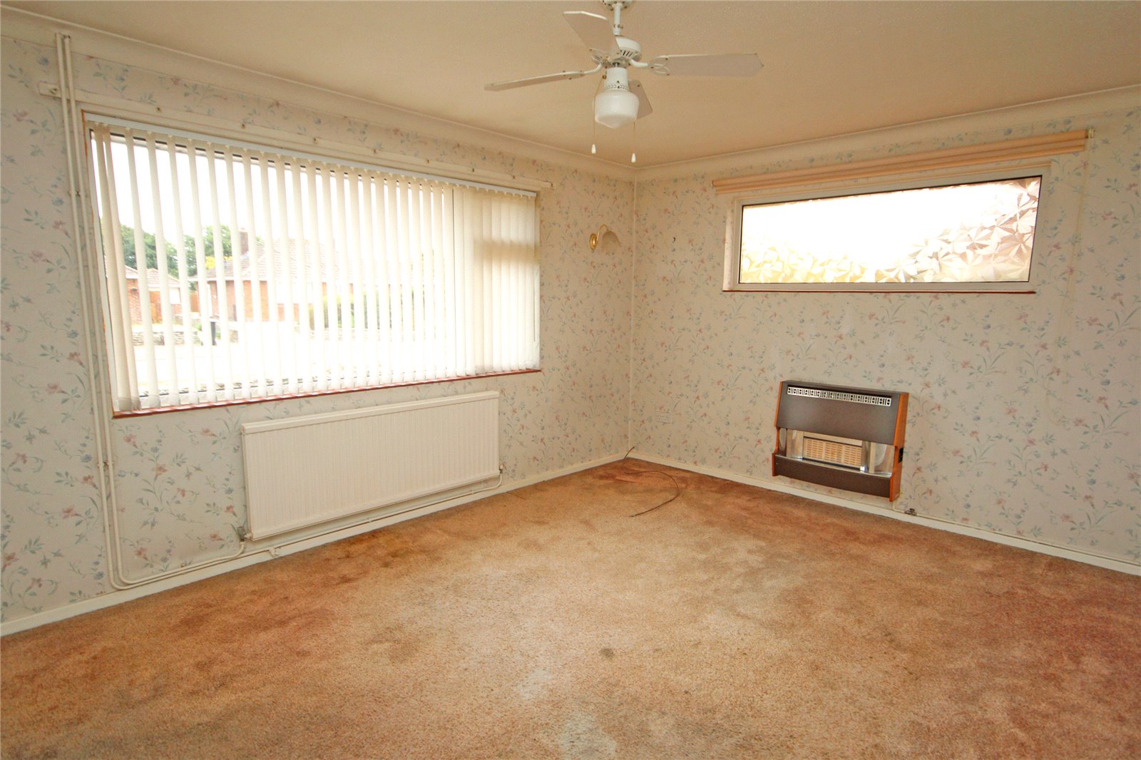 Wall mounted gas fire, windows to front and side.
