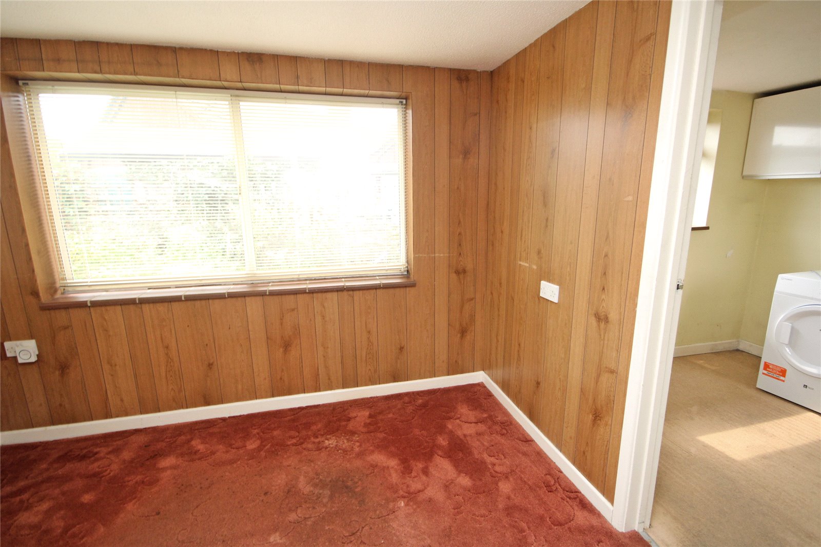 Space for dryer and up-right fridge/freezer, window and door to rear garden.