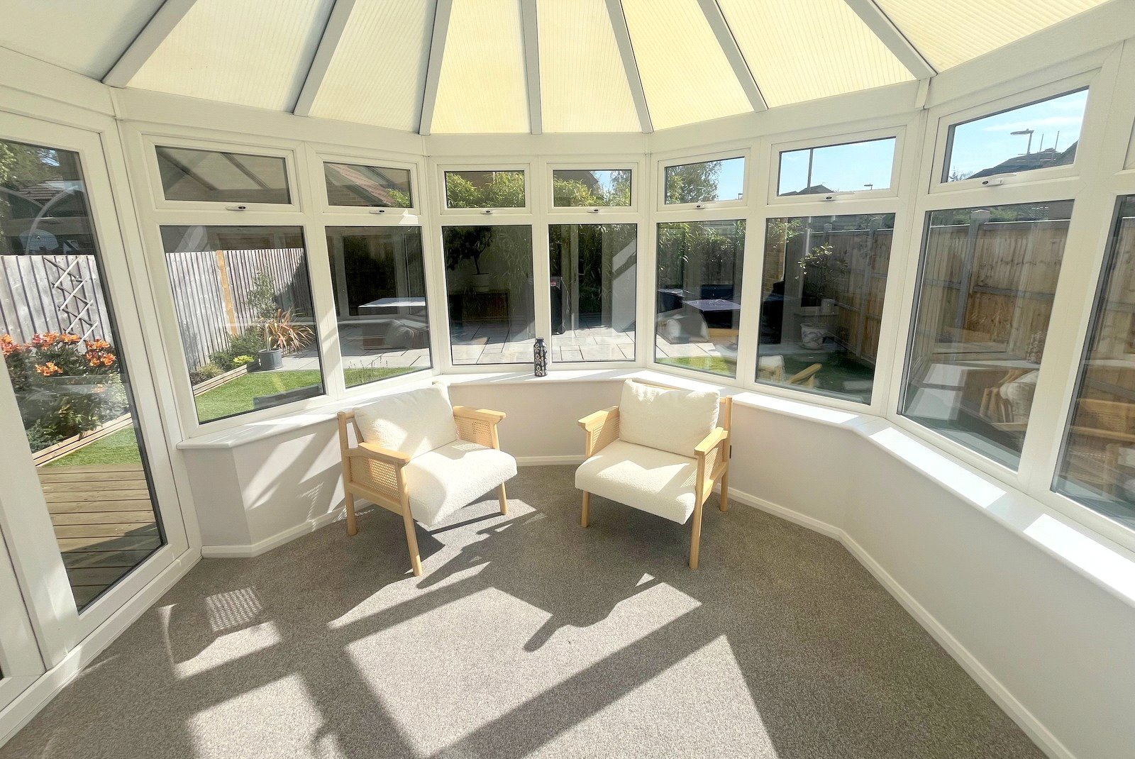 Inside, the accommodation is both spacious and functional. Highlights include a bright conservatory leading off the living room, a convenient downstairs cloakroom, a principal bedroom with fitted wardrobes, and contemporary bathrooms finished to a high standard.