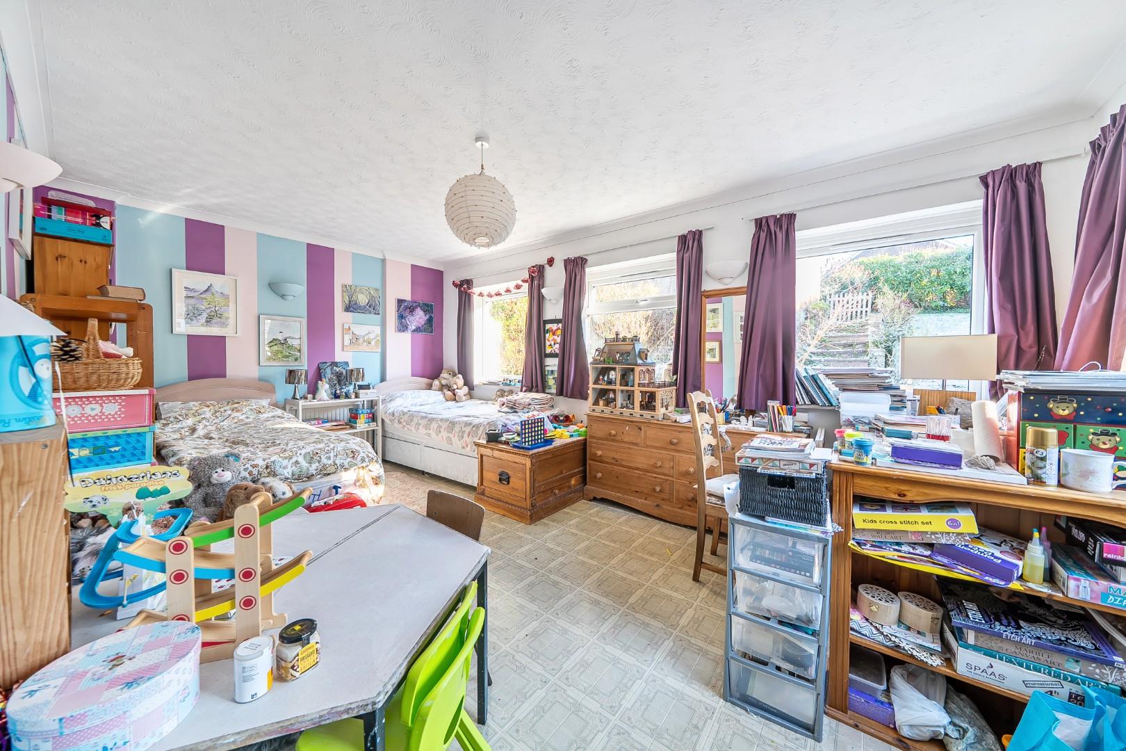 Outside, the property features a detached garage with off-road parking, ensuring convenience for multiple vehicles. The sizable rear garden is a delightful retreat, complete with a lovely patio area that is perfect for al fresco dining. Steps lead down to the garden, which offers further storage options beneath the property, adding to its functionality.