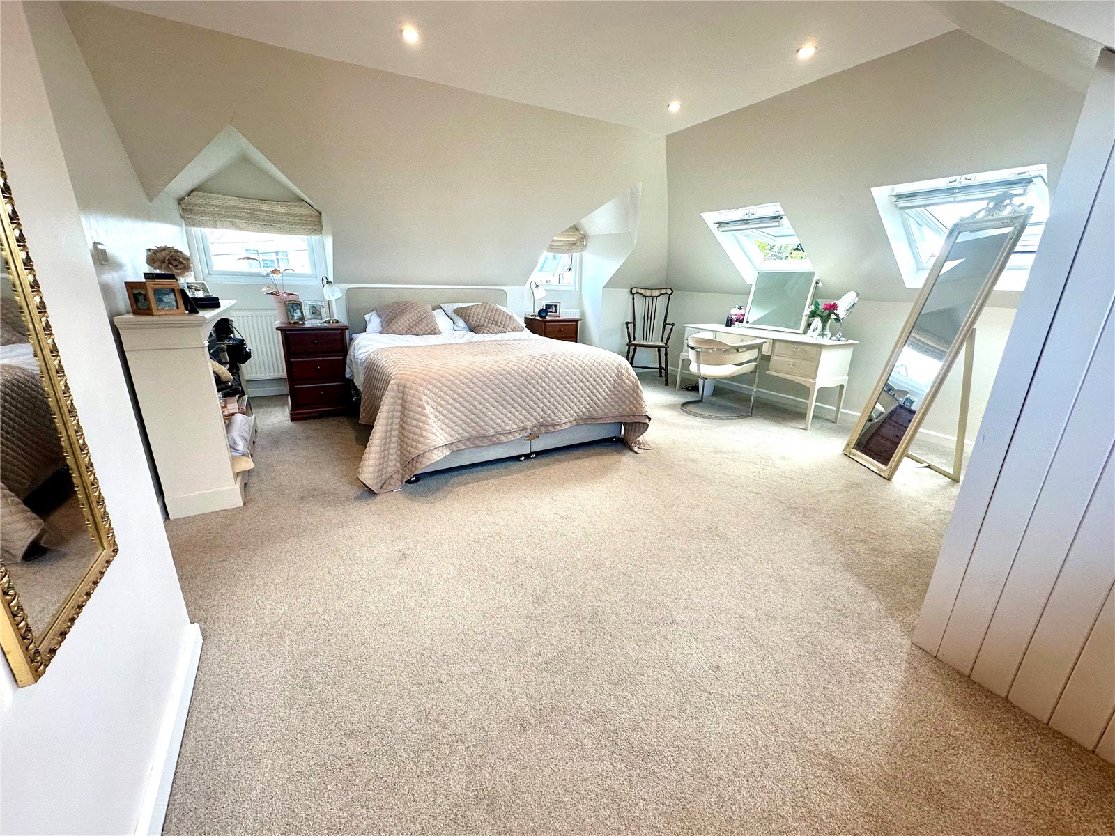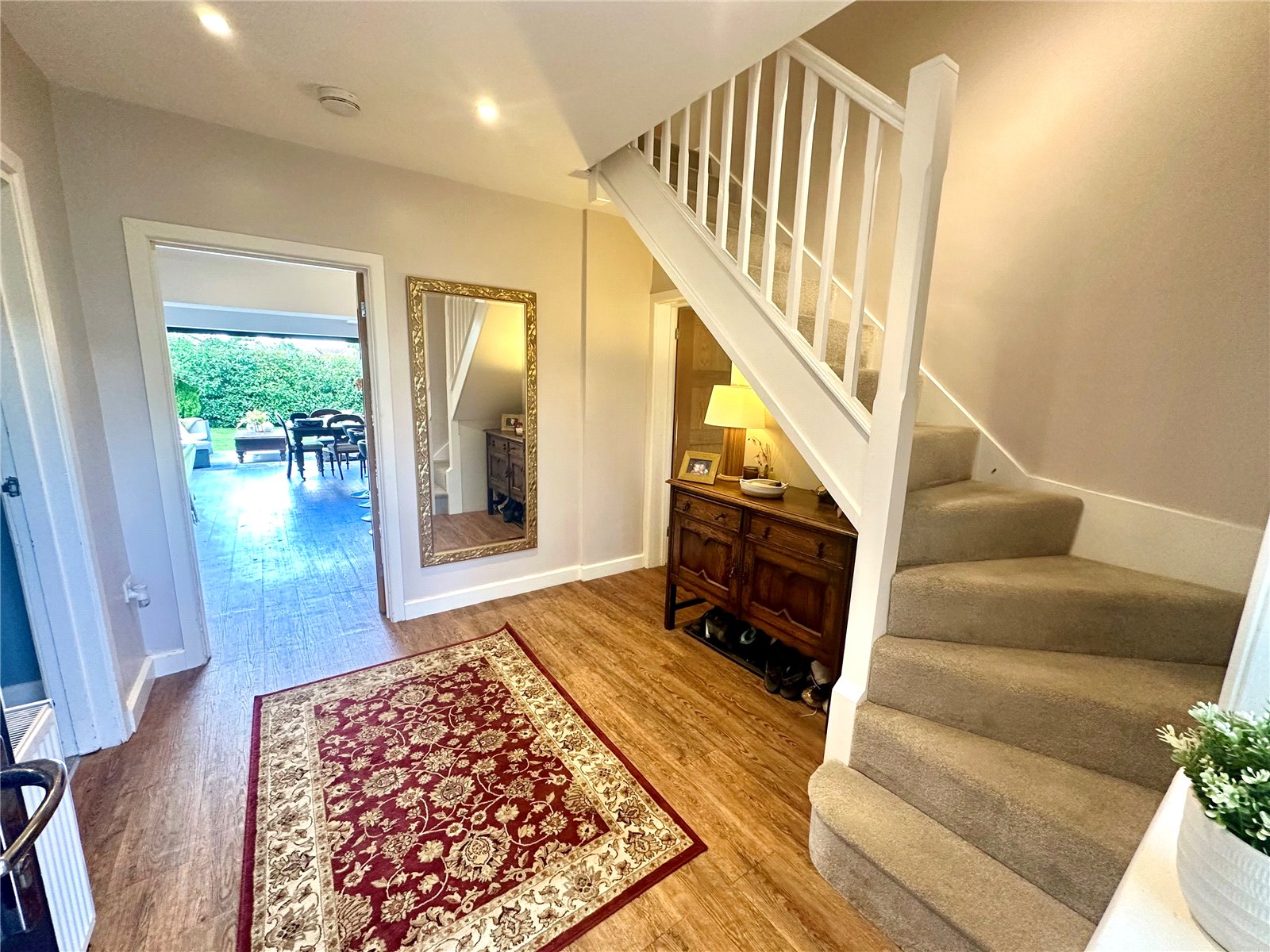 The rear garden is mainly laid to lawn with hedging to the rear boundary. A raised terrace runs along the rear of the property. There is a further terrace to the side of the property with a pergola and small pond.