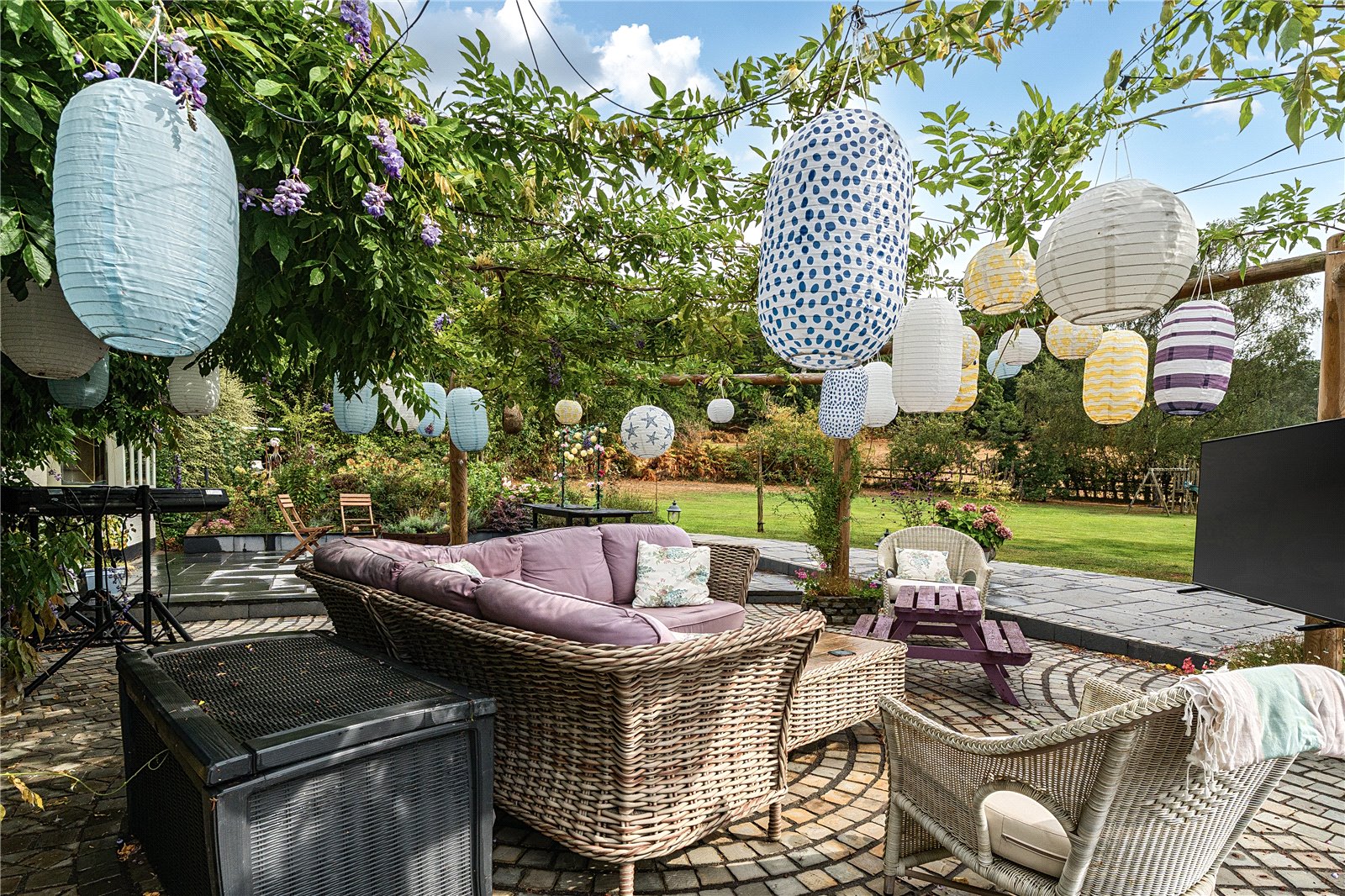 Cottage flower borders. Summerhouse with a bar, power and lighting. Large barn with power and lighting. Space for a Hot Tub. Various seating areas around the grounds.