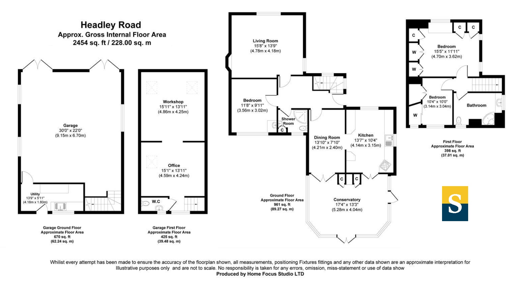The garage itself is an absolute gem and could be converted to provide further formal accommodation if desired, subject to the usual constraints. In its current configuration the ground floor benefits from a double garage with utility room behind. Stairs lead up to the 1st floor which has a wc and two semi-open plan office areas.