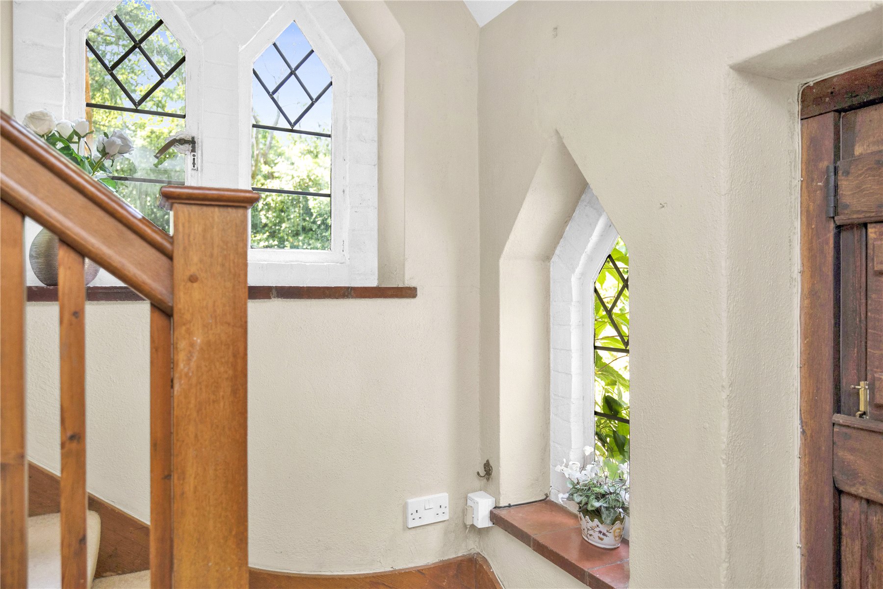 Moving to the main house there are a number of charming character features such as the wooden front door and arched leaded hallway windows, but it offers modern accommodation throughout, all be it some of it needs a little refreshment.