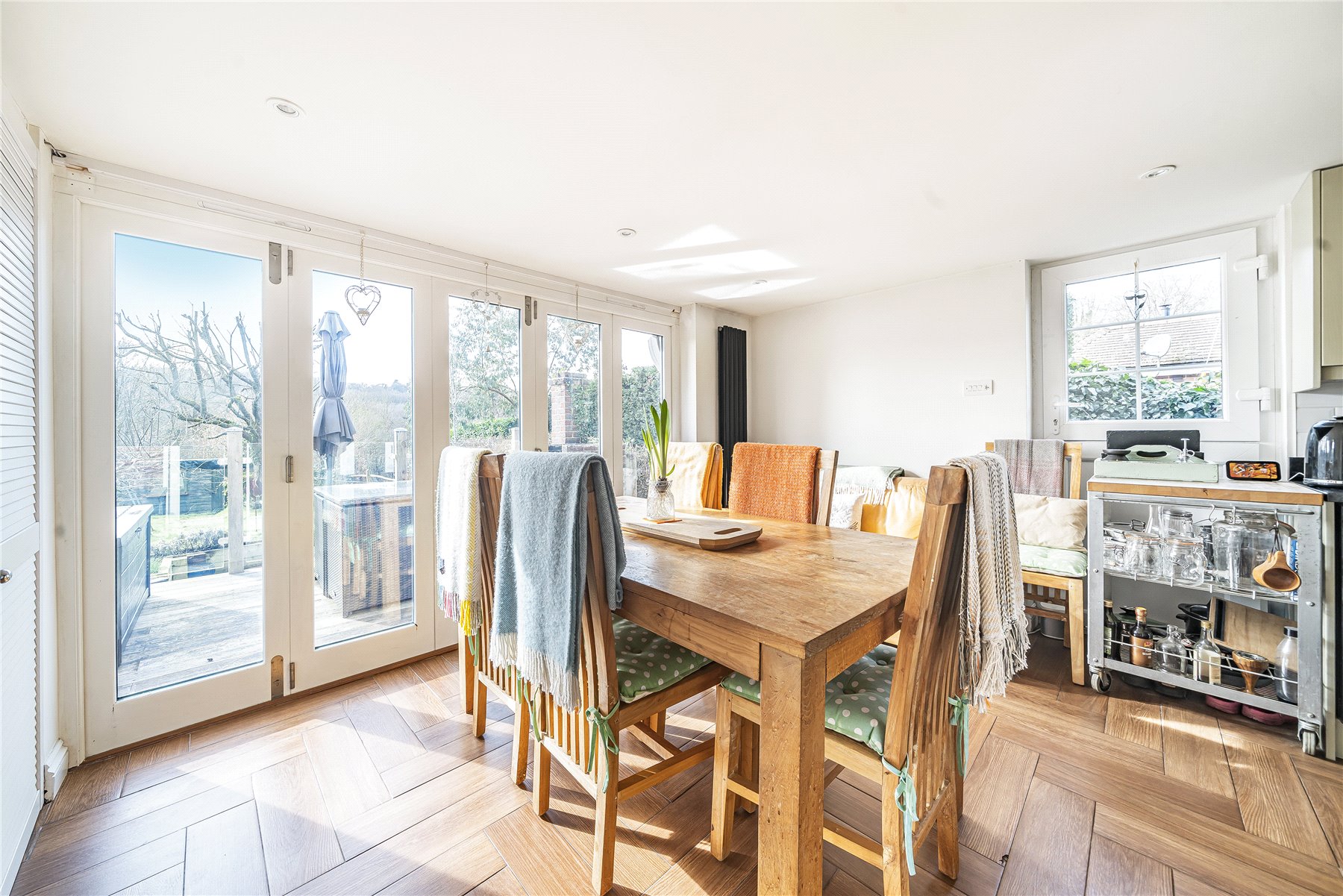 The end cottage in a terrace of just three homes built in 1911, enjoys a slightly elevated position on the scenic semi-rural fringes of Haslemere, where Surrey meets Hampshire. The property was thoughtfully extended and enlarged in 2012 by the current owners, creating additional ground and first-floor living space, including a reception room, an extra bedroom, and a delightful breakfast/dining room that overlooks the south-facing decked terrace and rear garden.