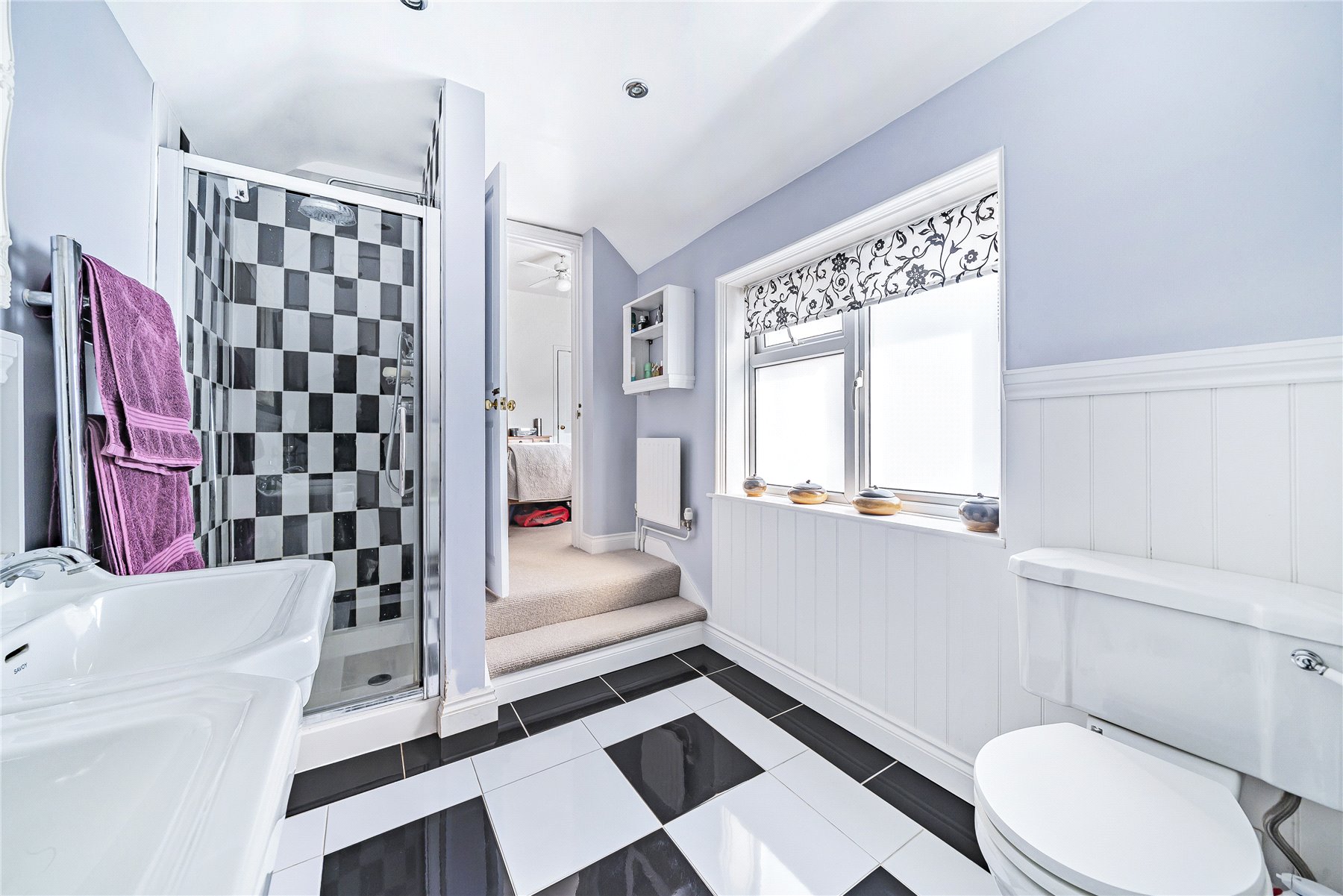 The first floor has been carefully designed, with Bedroom 1 enjoying its own ensuite bath and shower room, while Bedrooms 2 and 3 share a Jack and Jill ensuite shower room. The property benefits from LPG gas central heating, private drainage, and double glazing throughout.