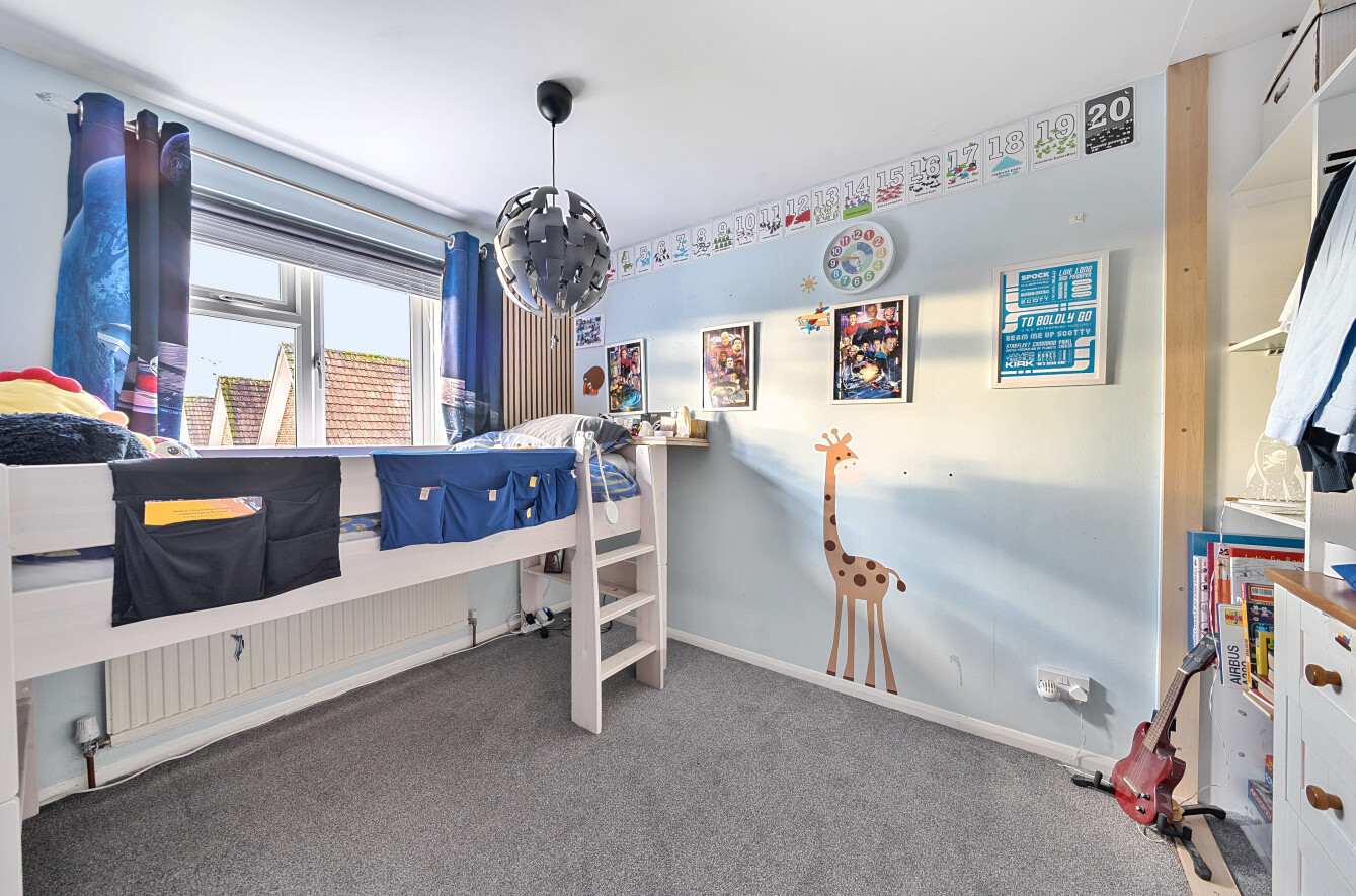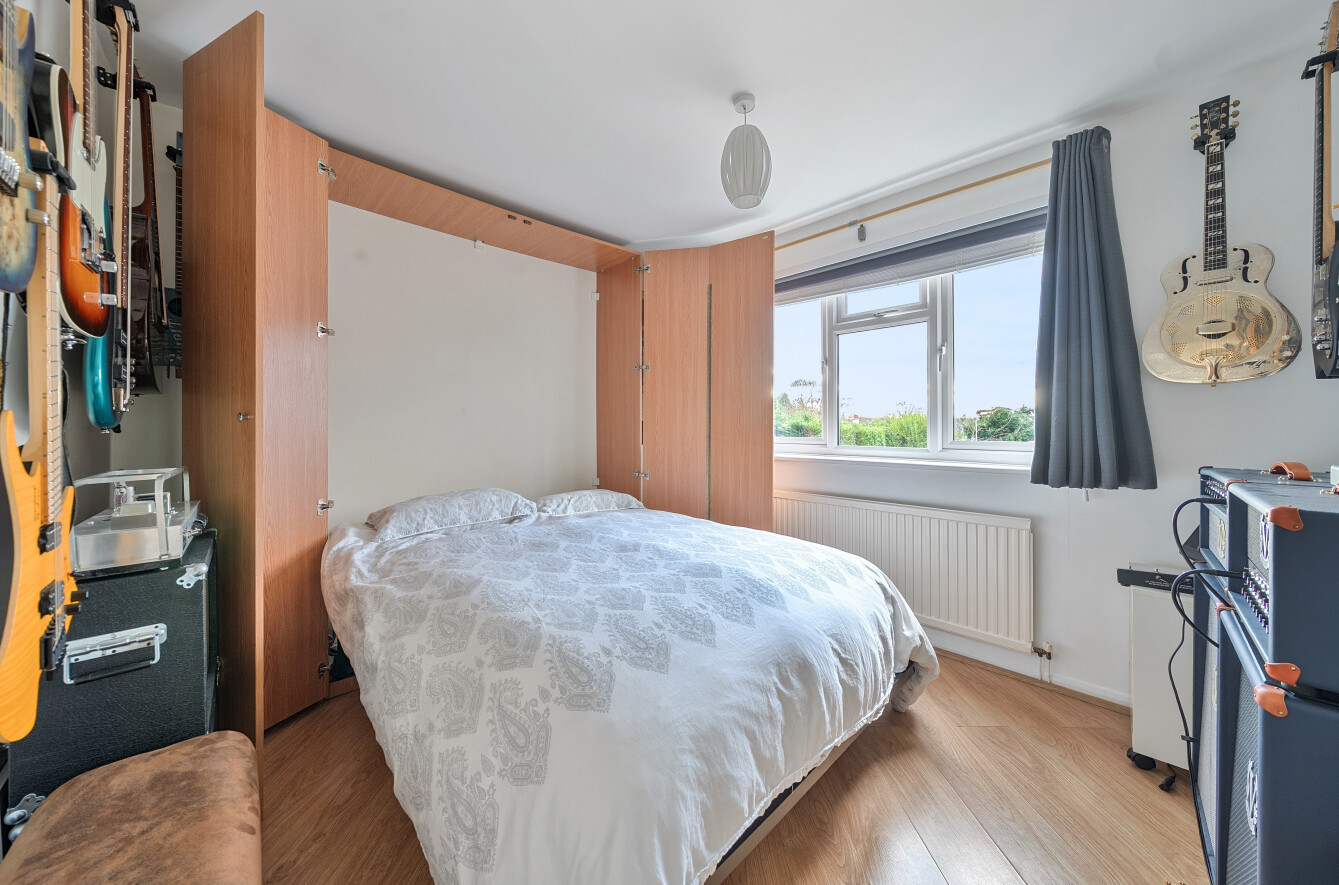 Stairs with an attractive glass banister take you up to the first floor landing where four bedrooms and a family bathroom can be found. Bedroom three is currently a music studio with a cleverly designed storage unit to the far wall featuring a full size pull down double bed, providing great guest accommodation whilst leaving the room free for other pursuits for day to day use. Bedroom four is currently used as a walk in dressing room but can easily revert to a bedroom with the removal of the wardrobes. The family bathroom is contemporary with fully tiled walls, a walk in shower and bath.