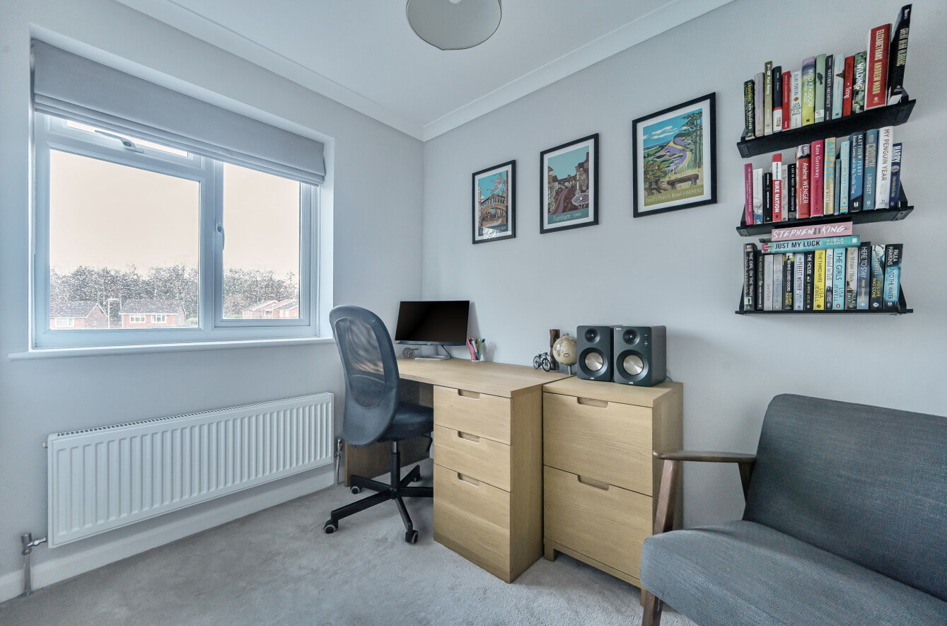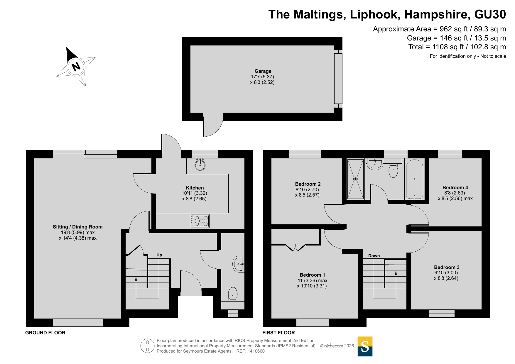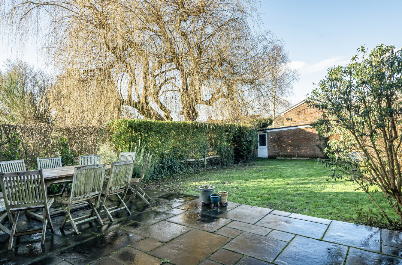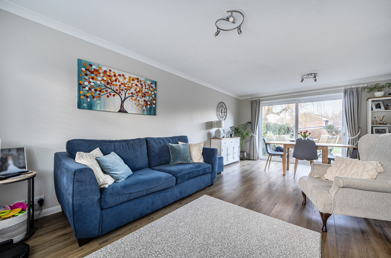 Situated in a sought-after position on The Maltings, Liphook, this attractive and well-presented four-bedroom detached family home occupies a generous plot with ample space to both the front and rear, offering excellent outdoor living and off-road parking.The property is approached via a substantial gravel driveway providing parking for multiple vehicles, bordered by mature hedging and lawn which enhances both privacy and kerb appeal. A detached garage sits to the rear of the plot, offering additional storage or parking.Internally, the accommodation extends to approximately 962 sq ft (plus garage) and is thoughtfully arranged over two floors.The ground floor comprises a welcoming entrance hall with cloakroom and stairs rising to the first floor. To the front aspect is a bright and spacious sitting/dining room measuring over 19ft in length, with large windows and sliding doors that flood the room with natural light and provide direct access to the rear patio and garden ideal for entertaining and family life.The separate kitchen is fitted with a comprehensive range of modern shaker-style units, integrated double oven, hob with extractor over, and ample worktop space. The layout provides excellent storage and practicality, with views over the rear garden.Upstairs, the property offers four well-proportioned bedrooms. The principal bedroom enjoys a pleasant outlook and generous proportions, while the remaining three bedrooms provide flexible accommodation for children, guests, or home working. The family bathroom has been stylishly refitted with a contemporary white suite including panel-enclosed bath, separate shower enclosure, vanity storage and modern tiling.Externally, the rear garden is a particular feature of the home. A paved patio area immediately adjoins the property, providing an excellent space for outdoor dining. The remainder is laid mainly to lawn and bordered by mature shrubs and hedging, creating a private and enclosed setting with plenty of space for children to play or further landscaping potential.