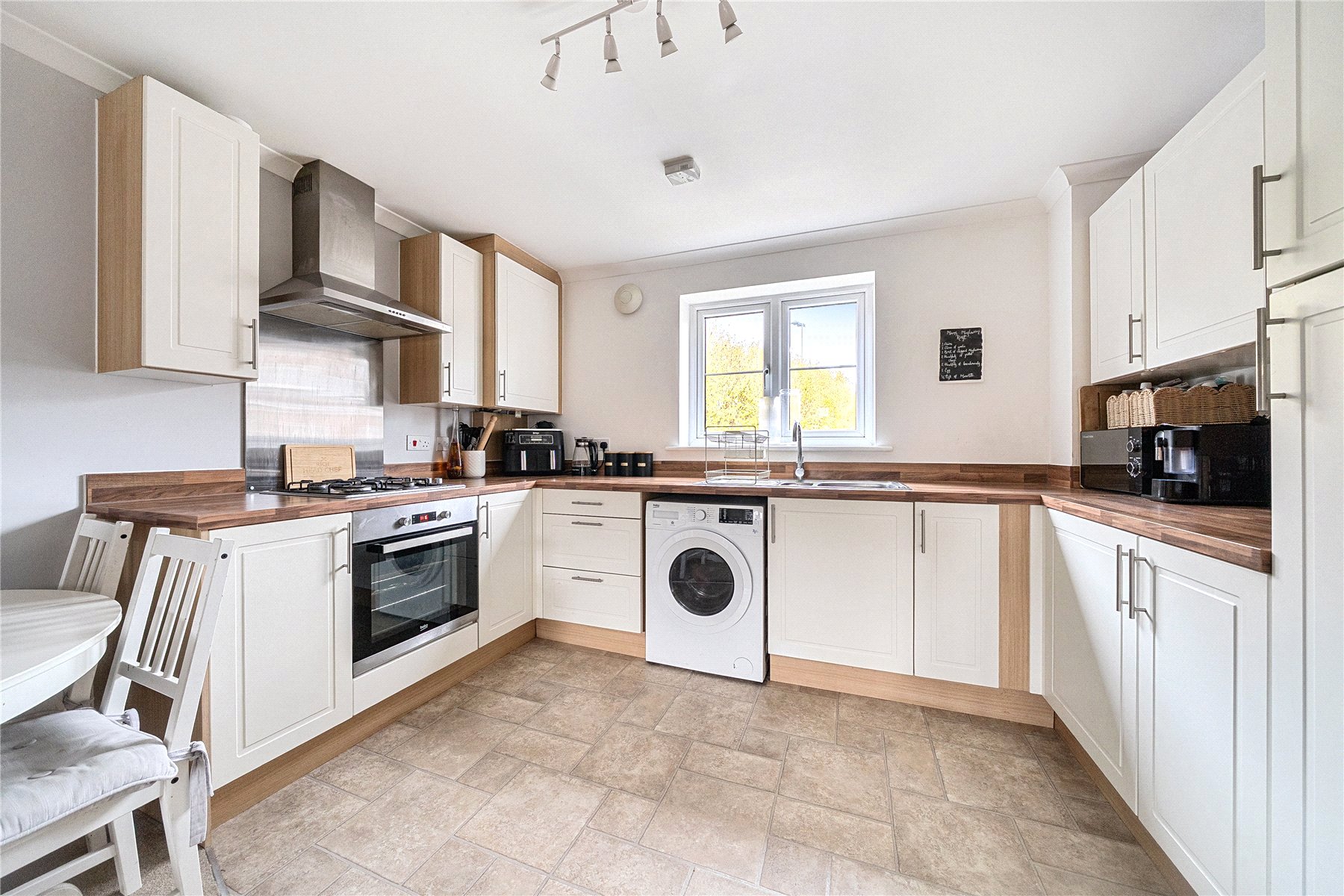 This bright and well-maintained home offers stylish, contemporary living throughout. The heart of the property is the generous open-plan kitchen/living area a light and welcoming space, perfect for both everyday living and entertaining. The modern fitted kitchen provides ample storage and worktop space, with integrated appliances and room for a dining table.