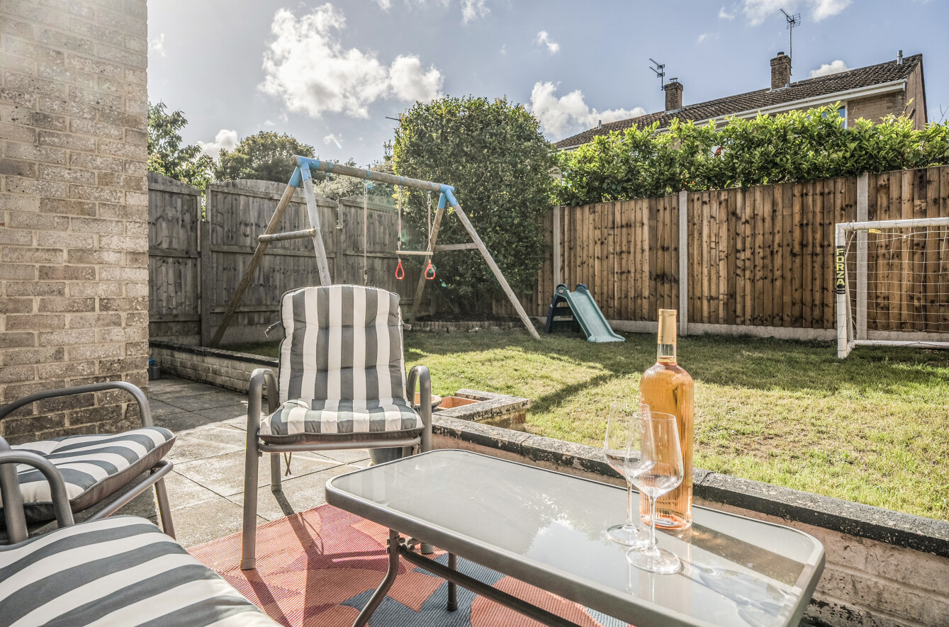 The rear garden is mainly laid to lawn with a patio area adjacent to the kitchen, where access can be made to the rear of the garage