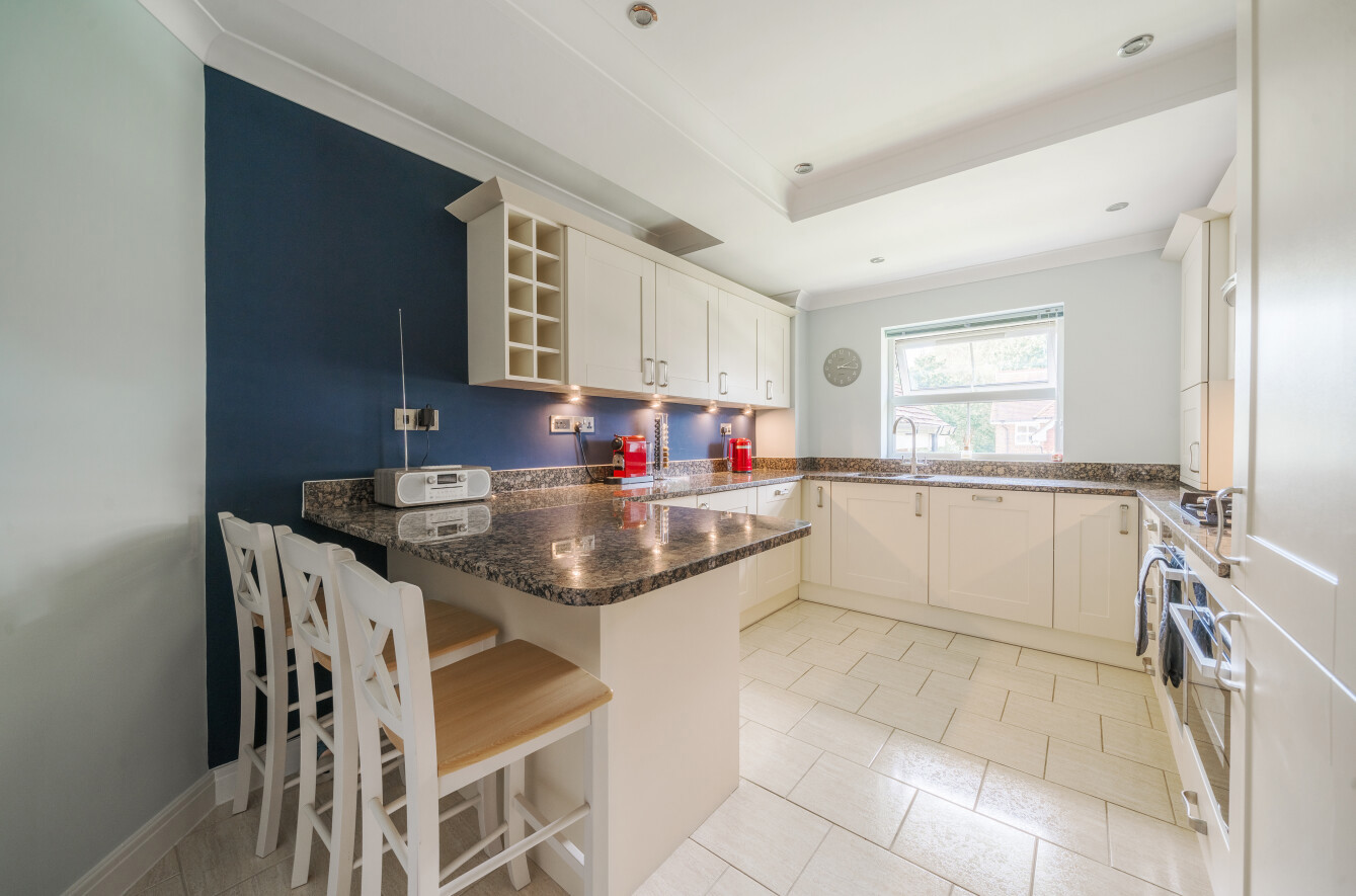 Adjacent to the sitting room is a generous kitchen with space for a breakfast table in addition to the breakfast bar in situ, there is a good sized utility room and between these two rooms there is extensive storage. The kitchen benefits from granite worktops, sink with incinerator and integrated dishwasher, double oven/microwave, gas hob and fridge freezer.