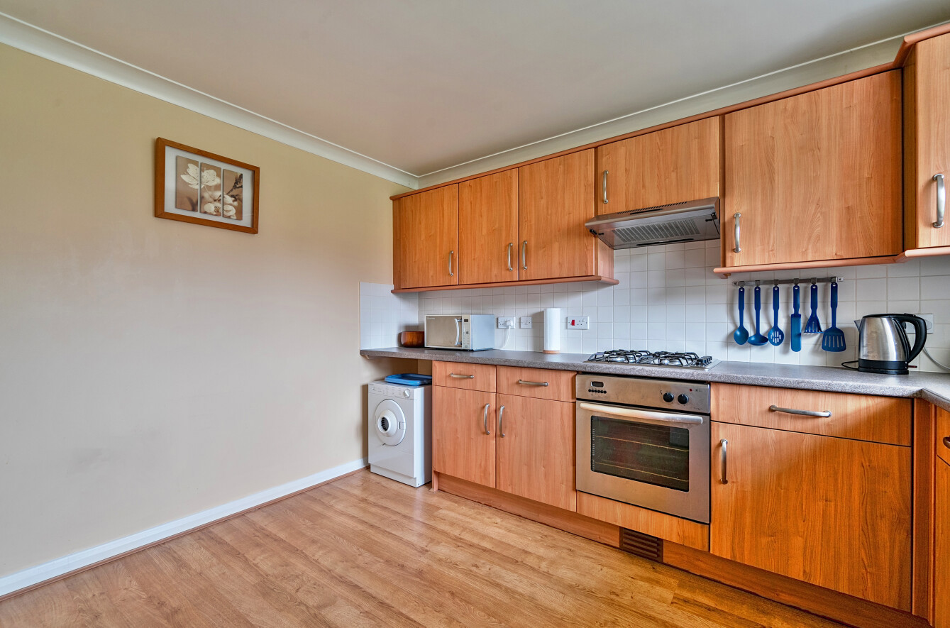 Good sized kitchen offering an excellent range of drawer and cupboard storage plus integrated oven and gas hob with space for further white goods and a breakfast table