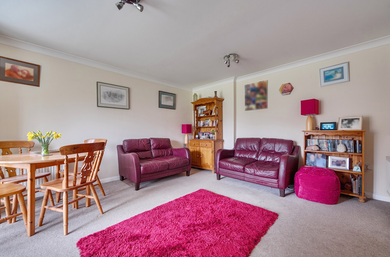 Living room with space for both lounge and dining furniture, and patio doors onto the communal gardens