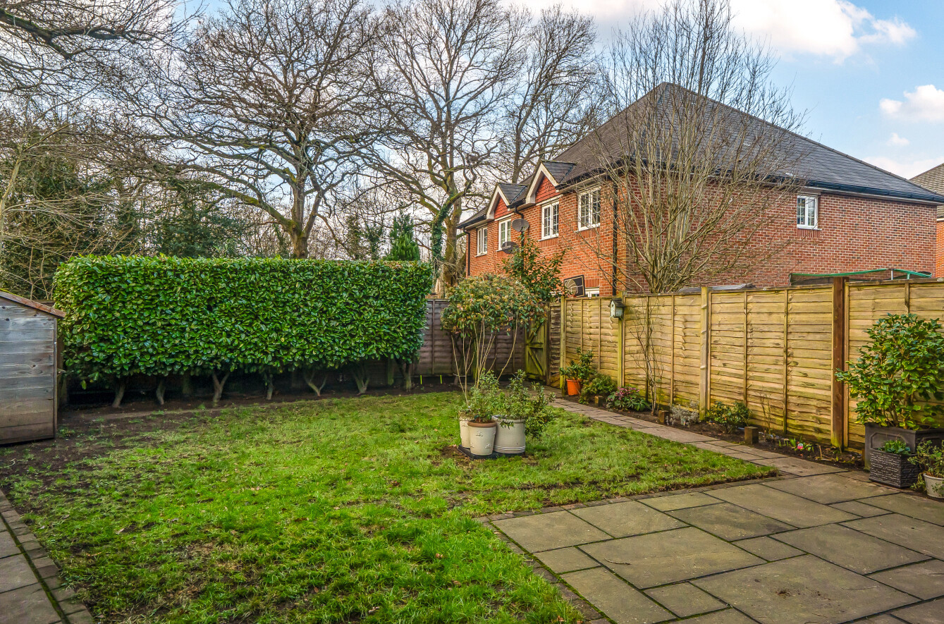 Level rear garden, wider than neighbouring properties. Enclosed by fencing and mature hedging. Adjacent to the house is a paved patio with a good sized lawn and path extending either side to the end of the garden where a shed can be found