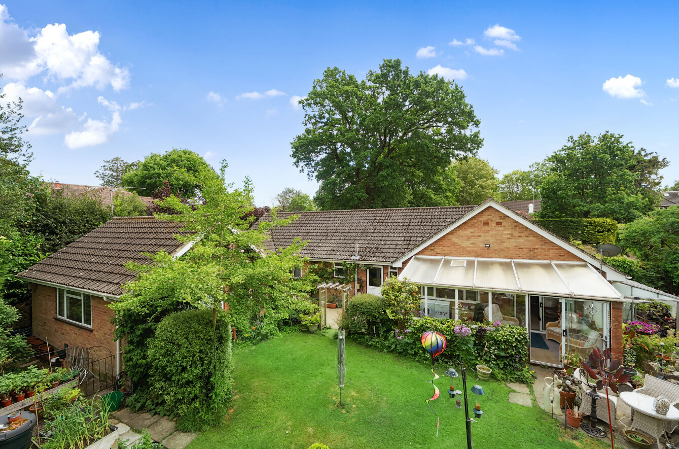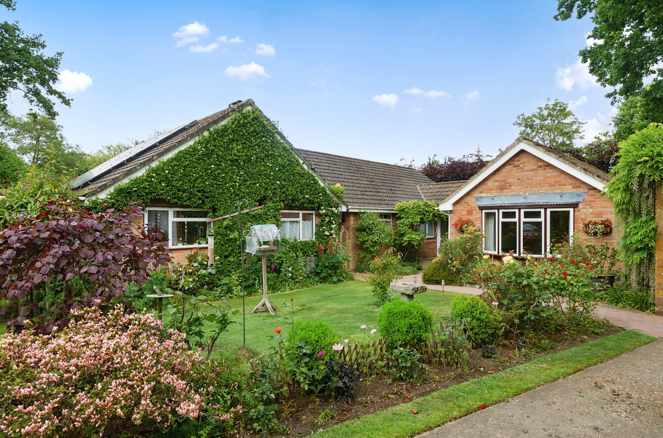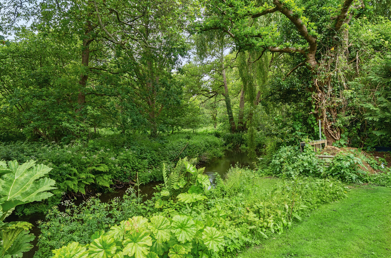 To the back of the bungalow are simply beautiful gardens, which have been lovingly curated and landscaped over the last 30 years. Adjacent to the conservatory is a paved patio area which is ideal for dining and entertaining, with lawns extending away edged by mature borders and feature shrubs offering colour and interest throughout the year. There is an ornamental pond, with two greenhouses and a tucked away spot with raised beds for fruit and vegetable growing. At the end of the formal garden is a Wisteria clad wooden divide with a gate through to a hidden garden. Steps take you to a second lawn which has pathways mown through it (so it can remain a wildlife haven) down to the River Wey, an idyllic spot to watch wildlife or simply enjoy the peace and quiet. There is a shed down here for the essentials. A very special spot to call your own.
