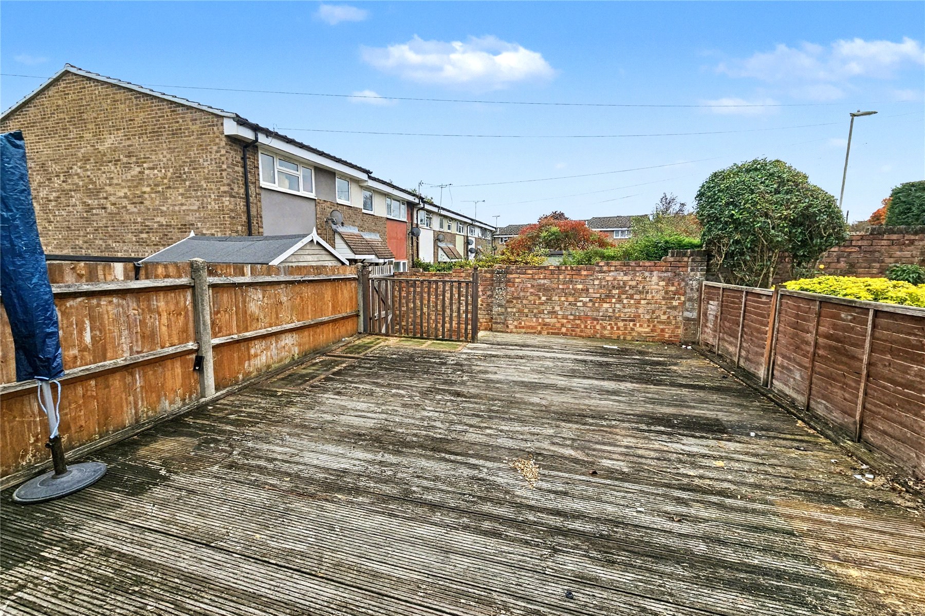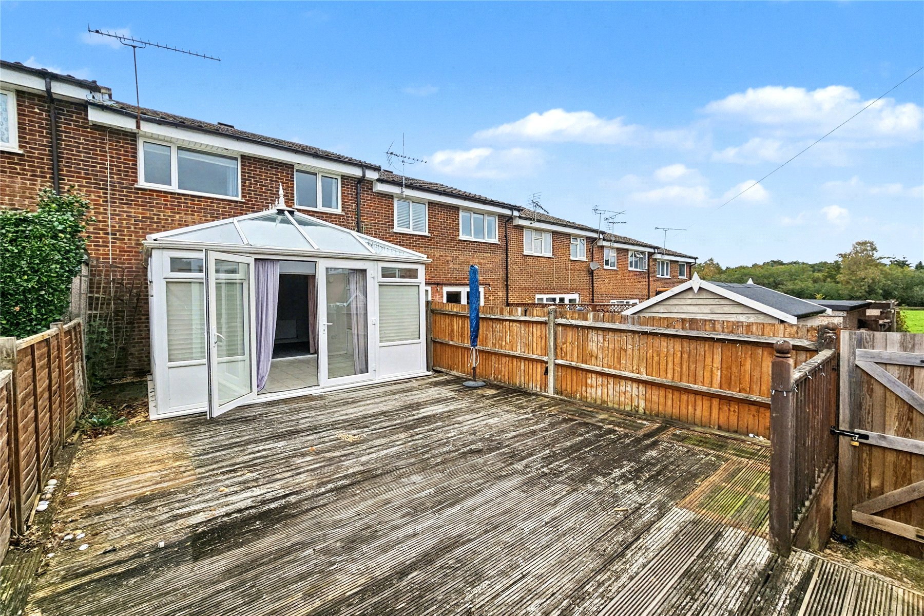 The rear garden has been completely decked offering a low maintenance area in which to relax or entertain. A back gate in the fence open onto a rear access path to a playing field with Headley Down Nature Reserve behind