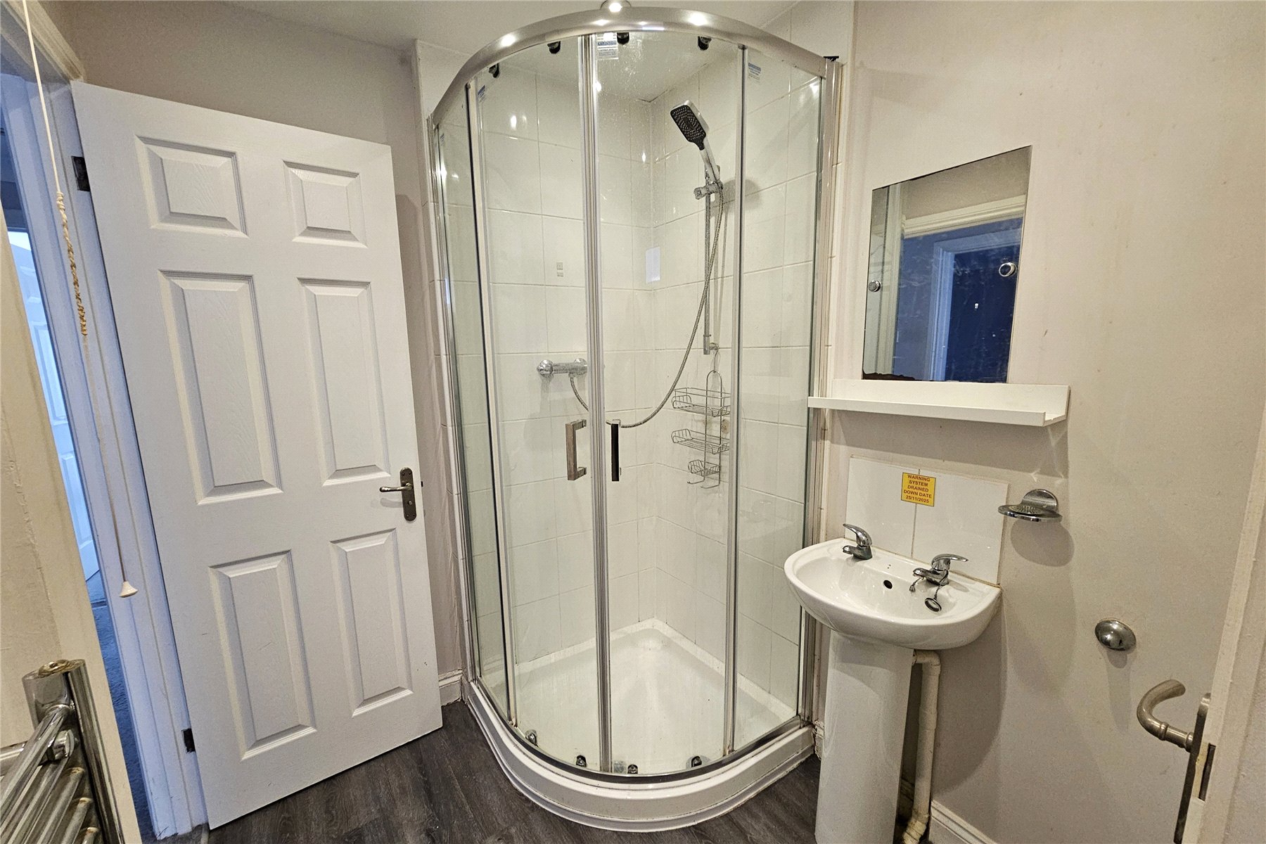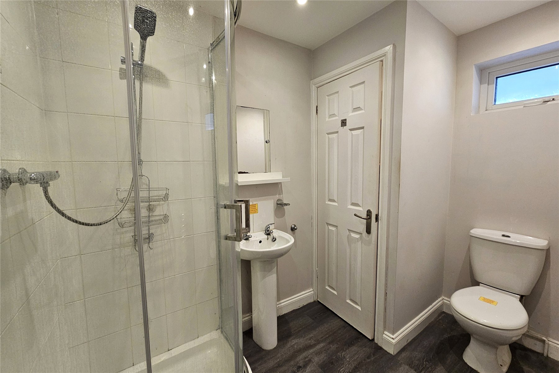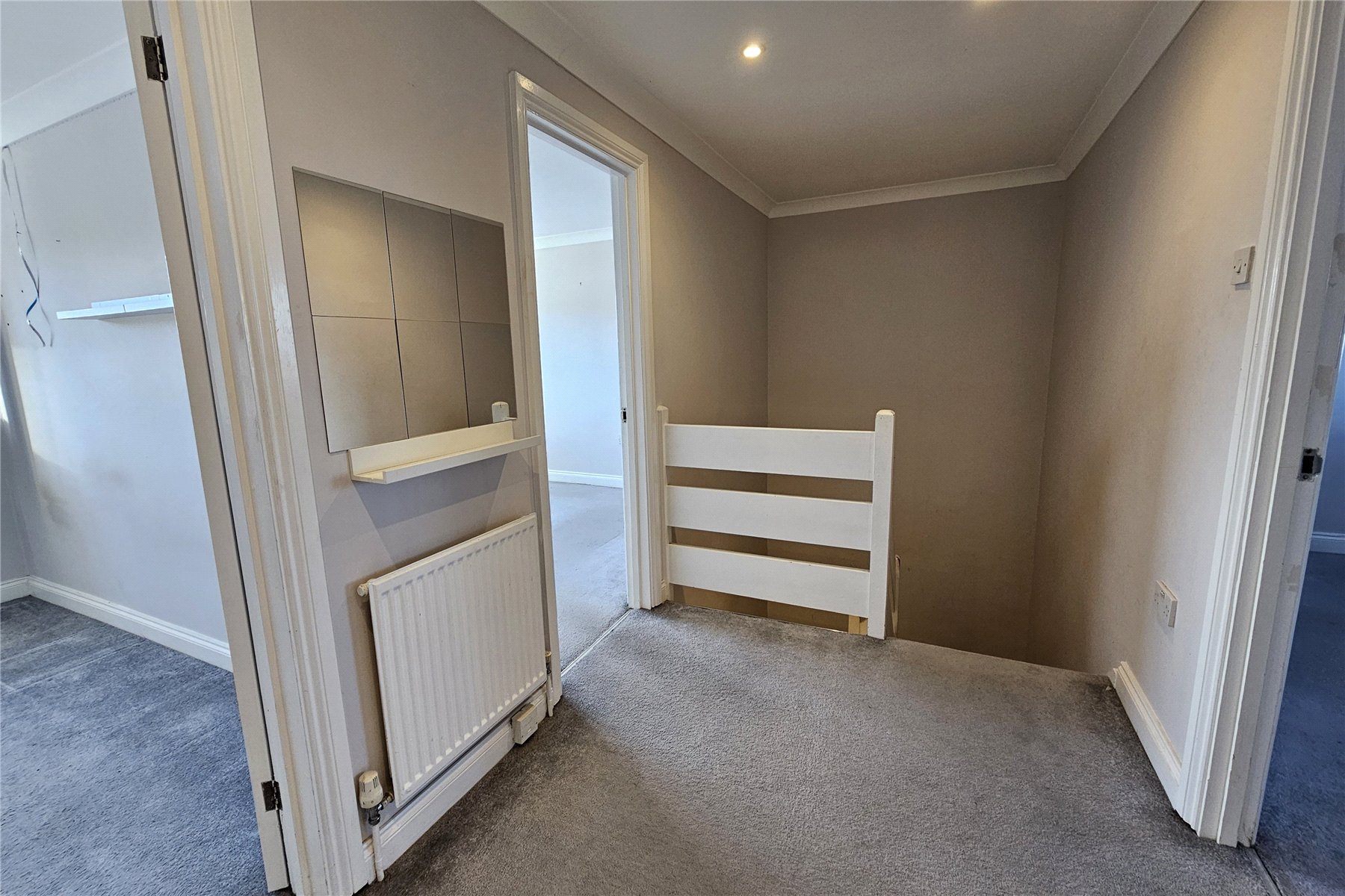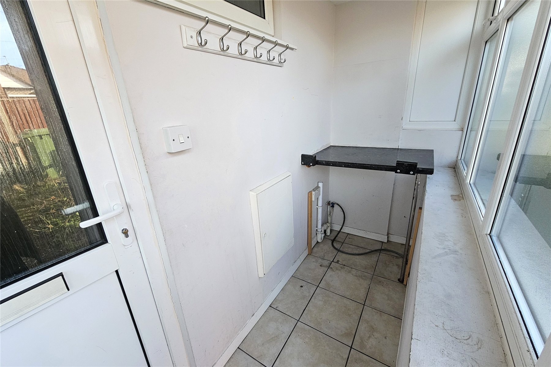 An inner front door opens into a hallway with open under stairs storage area at the rear and a shower-room with storage cupboard immediately to the right