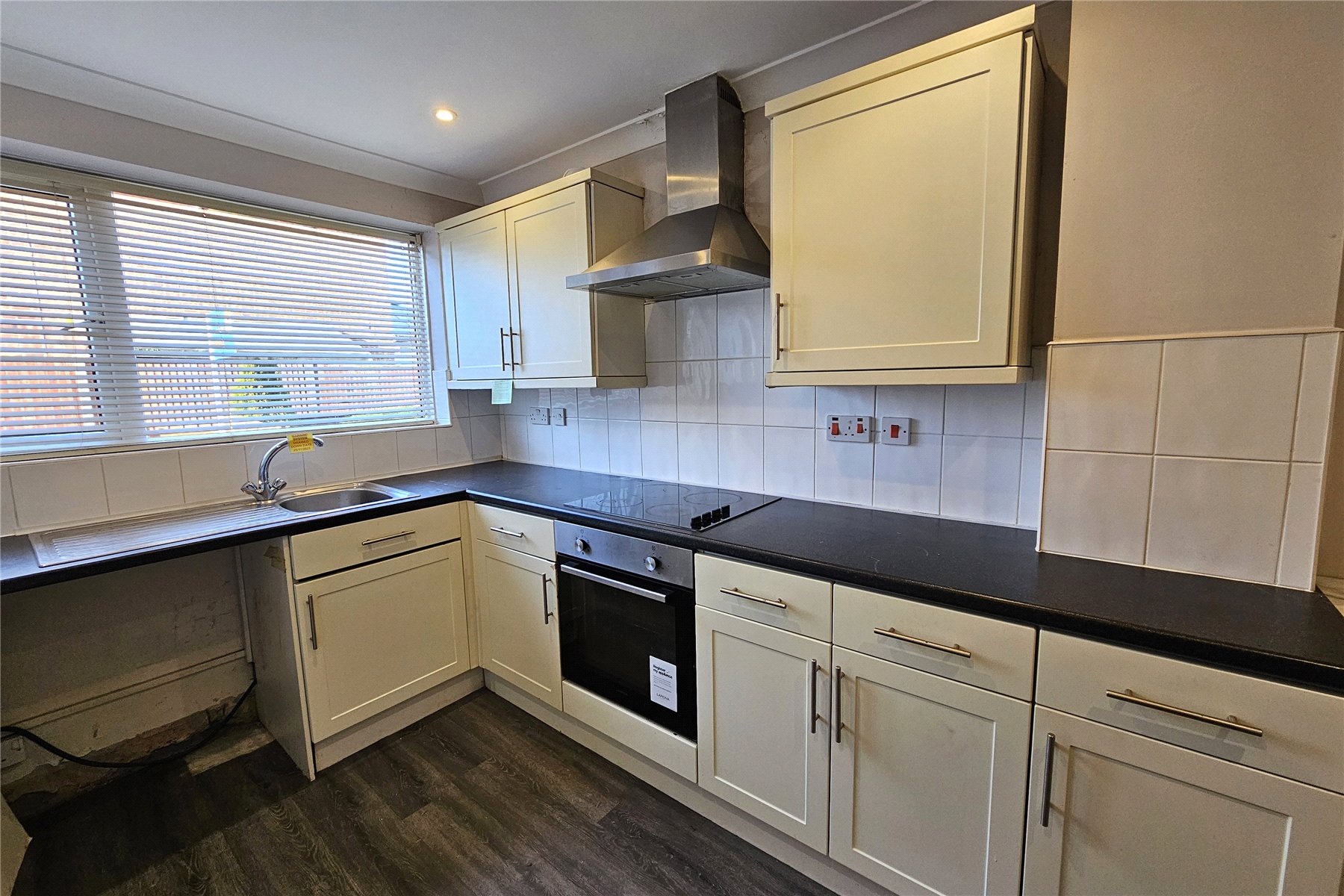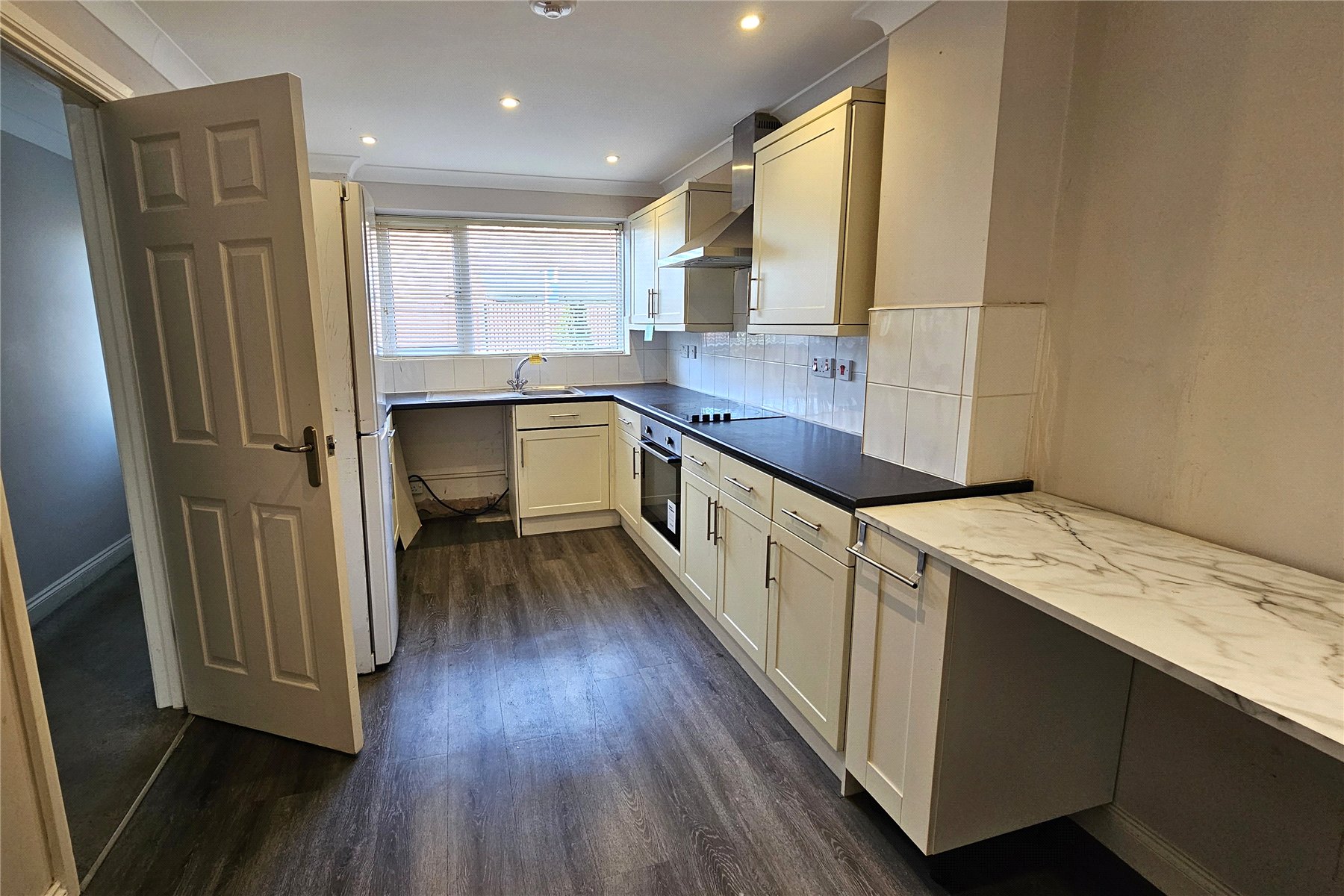 The kitchen is fitted with a selection of drawer and cupboard storage with space for a breakfast table to one end. A large window overlooks the front garden allowing plenty of natural light in