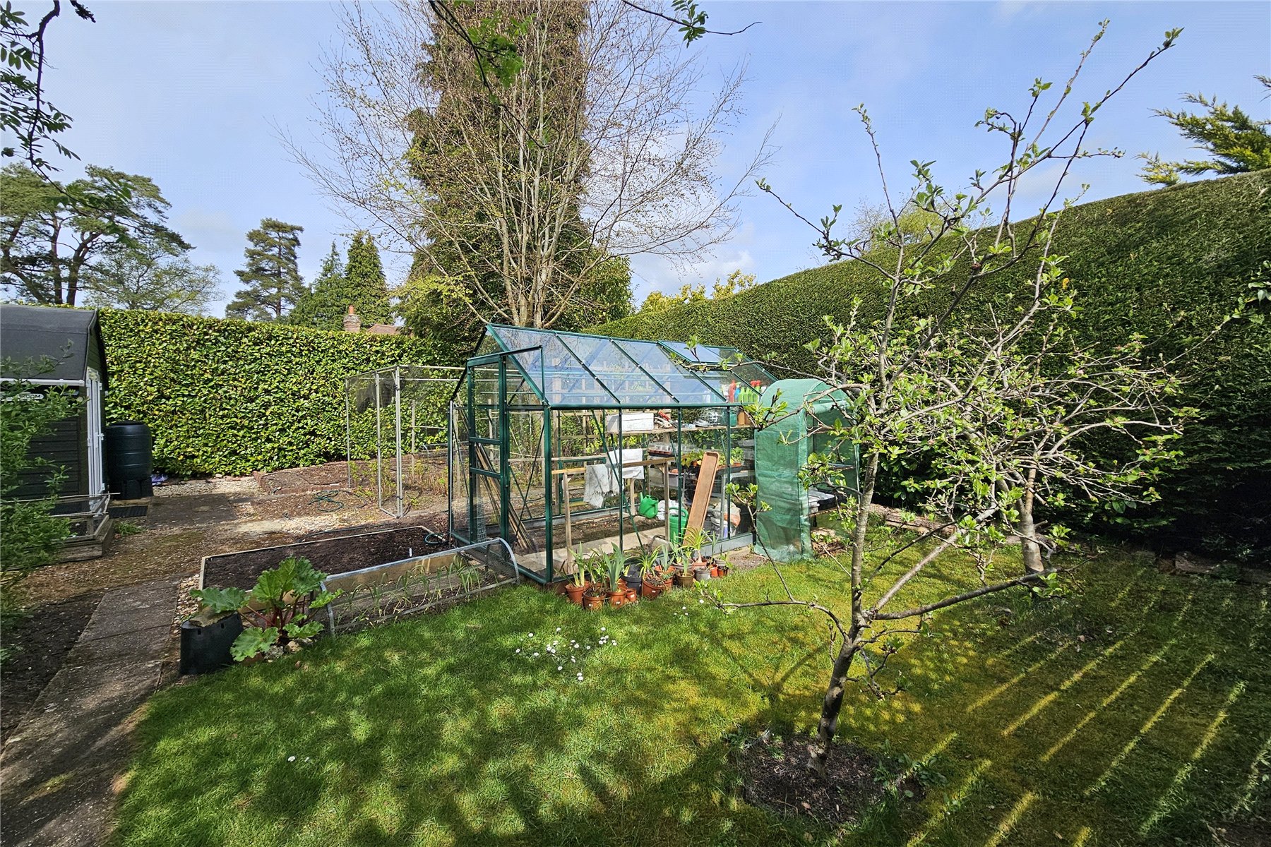 As a whole the plot is approx. quarter of an acre, with the rear garden extending over 125 feet. This has been lovingly landscaped and cultivated to provide an attractive space in which to rest, toil or entertain. Immediately adjoining the bungalow are two paved patio areas, with a log store and BBQ store close by making for easy summer dining on the BBQ. Beyond this a wide expanse of lawn extends down the garden, flanked by mature borders and feature planting including two stunning red acers and several camelia's. Toward the end of the garden is an insulated garden cabin, with power and patio doors onto the garden; an ideal home office, hobby room or quite spot in which to relax and read. Beyond this a working area been created, with a greenhouse, fruit cage, raised vegetable beds, established Cox and Bramley apple trees and a shed.